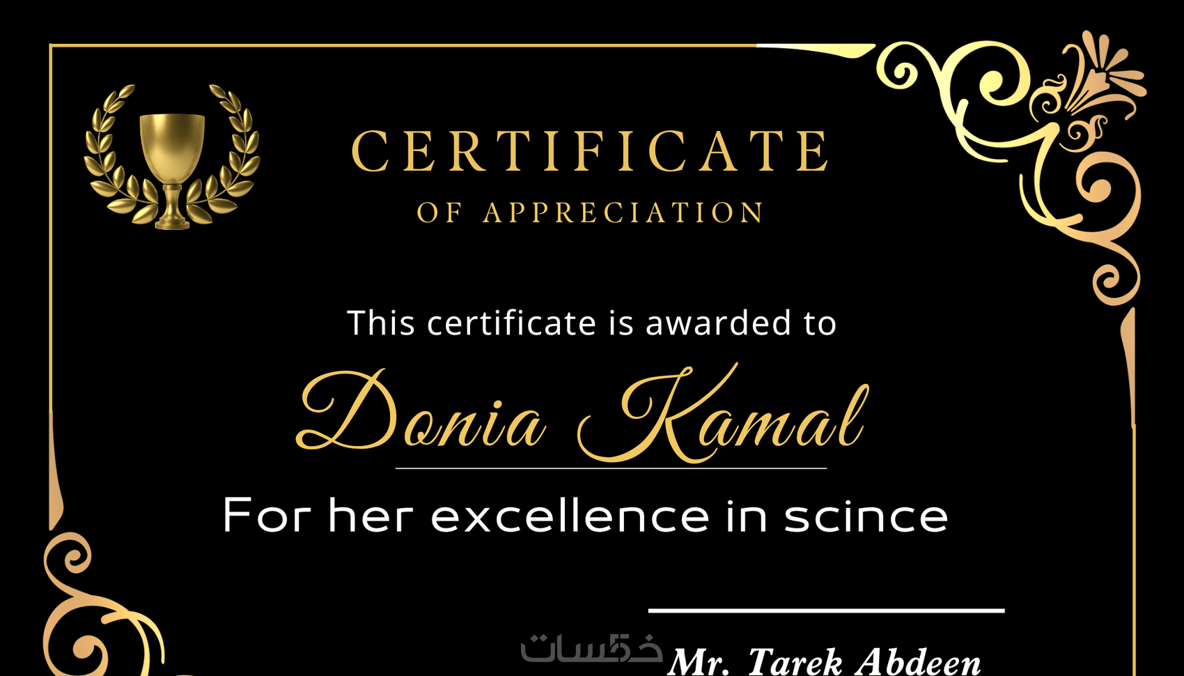 يحصل العميل - عند شراء هذه الخدمة - على تصميم شهادة تقدير بجودة عالية وبشكل أنيق جاهز للطباعةالتصميم باللغة العربية أو الإنجليزية، وتحصل عليه بصيغة PDF ، PNG ، JPN ، وأى صيغة أخرى تفضلها استلم التصميم خلال ساعات معدودة