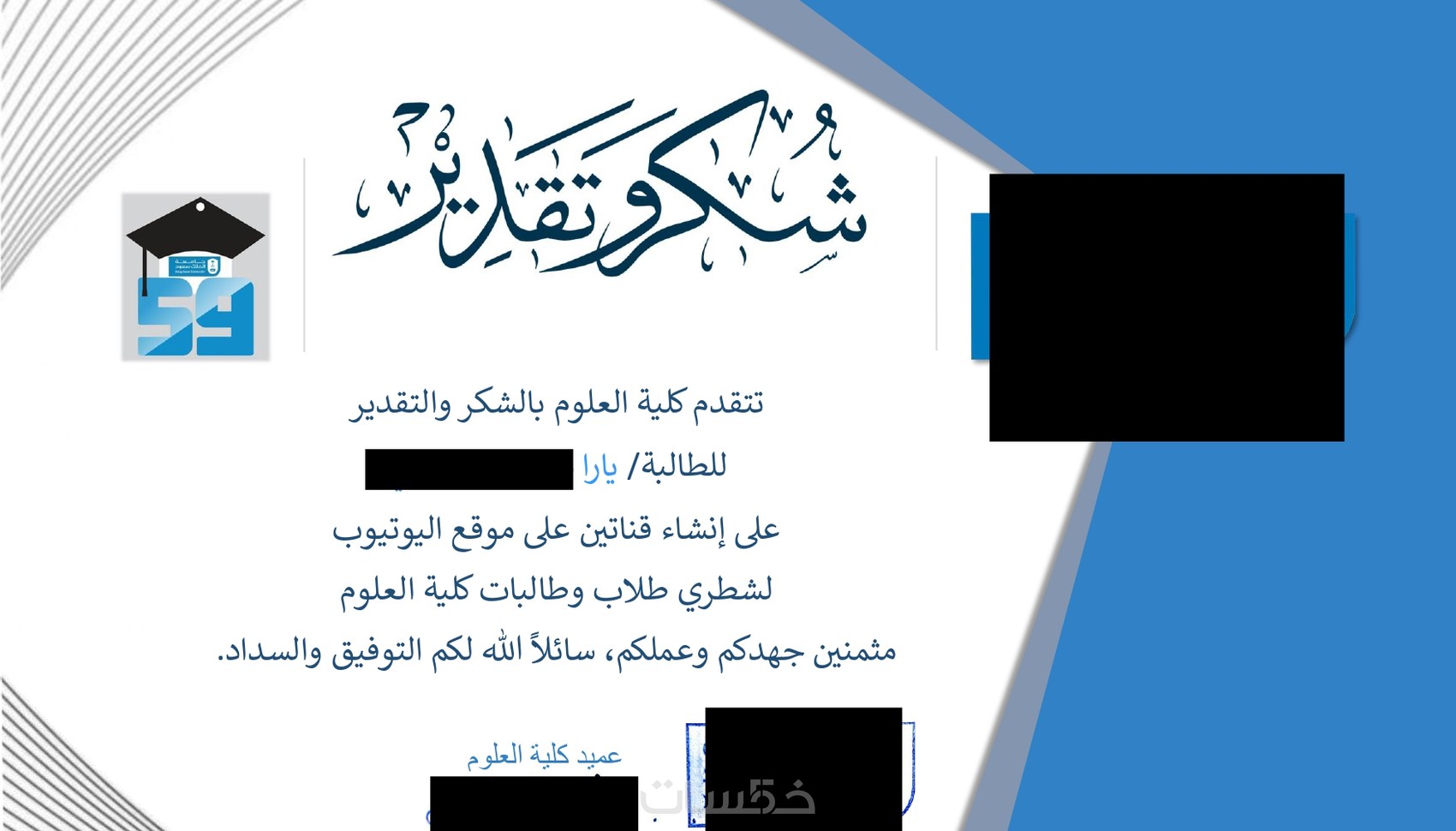 1- أصمم شهادات شكر وتقدير ببرنامج الوورد وممكن أستعين ببعض البرامج الخاصة