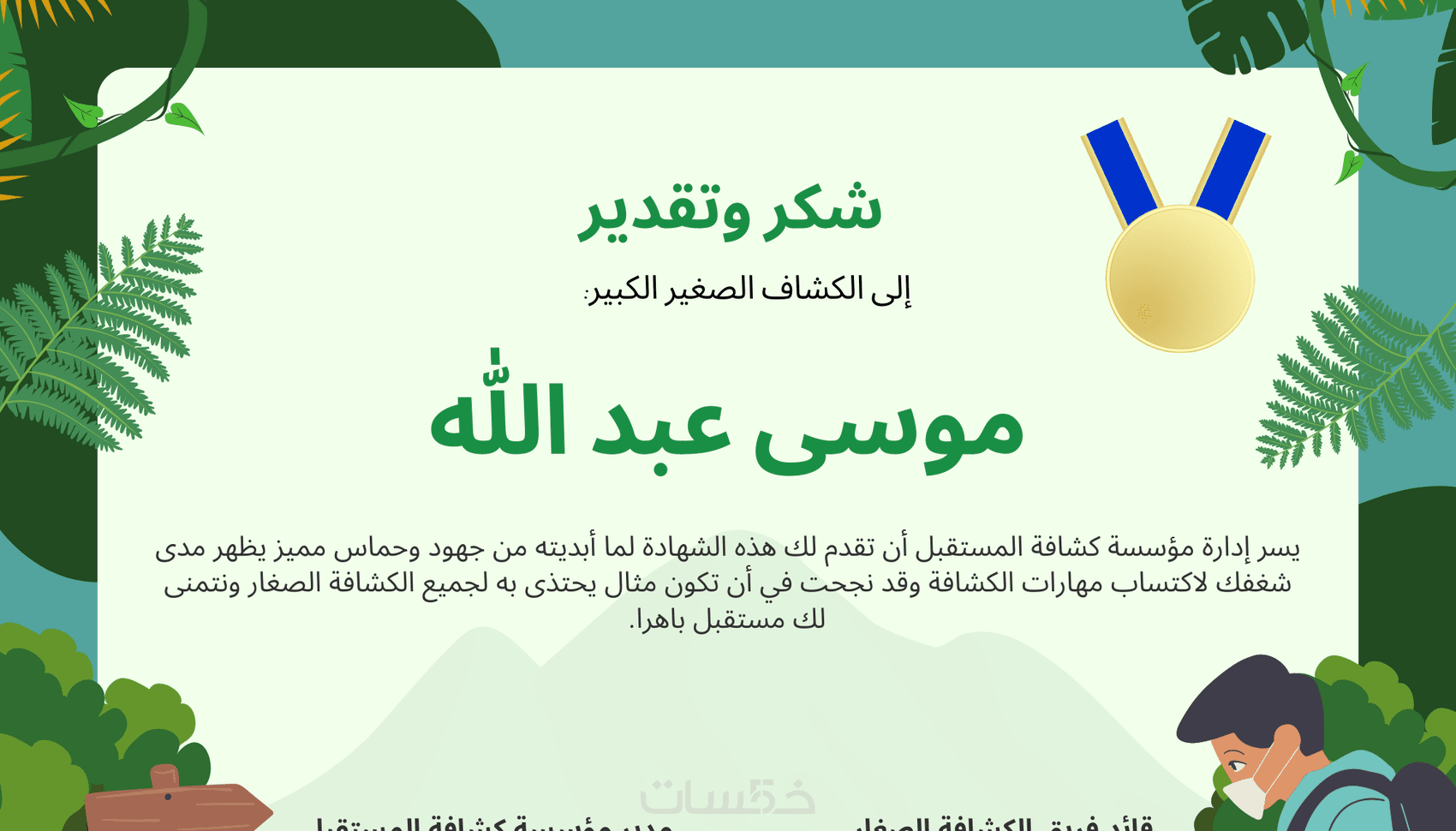 -يمكنني كتابة الاسم الثلاثي للشخص صاحب شهادة التقدير فقط راجع تطوير الخدمة.