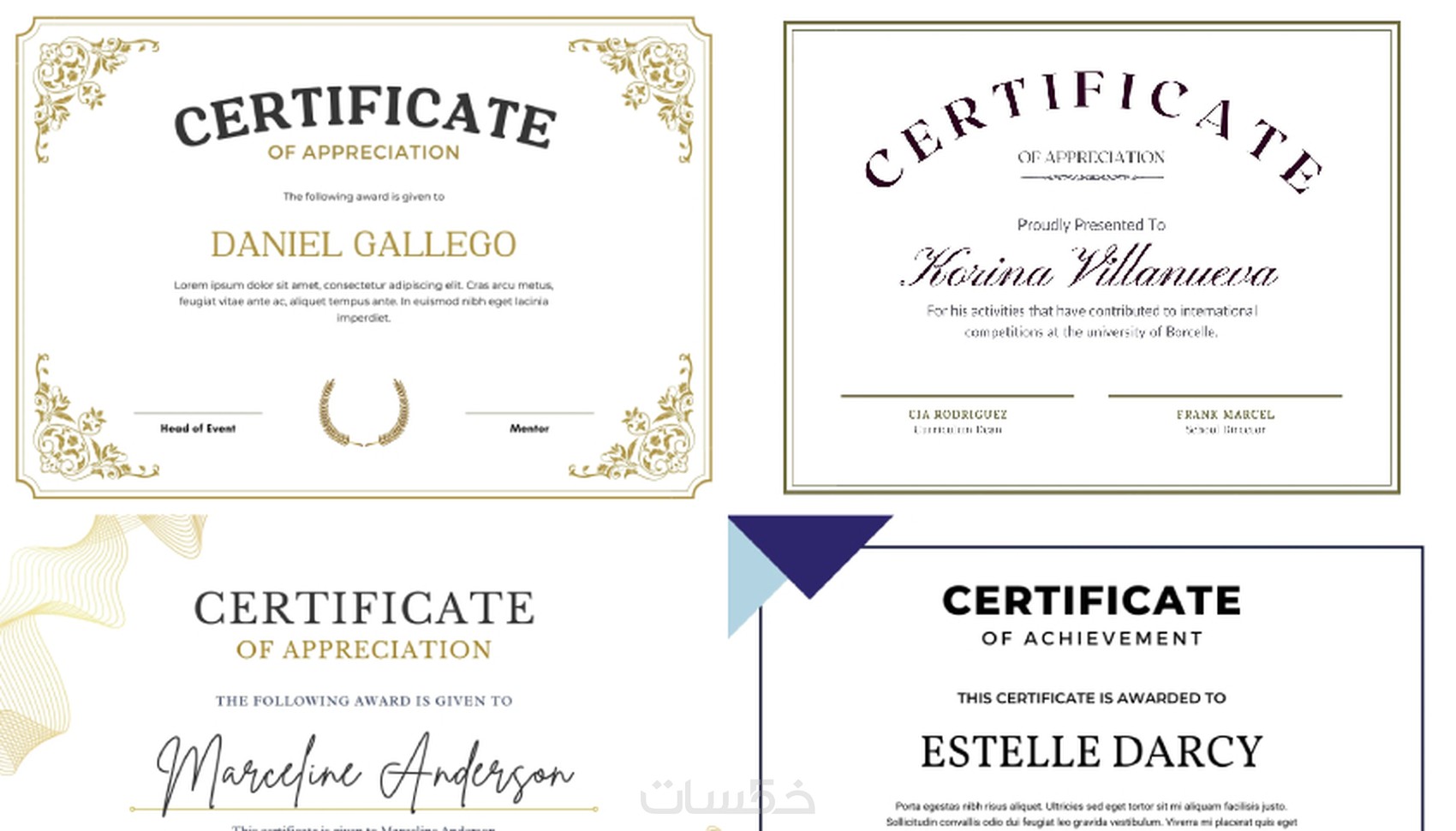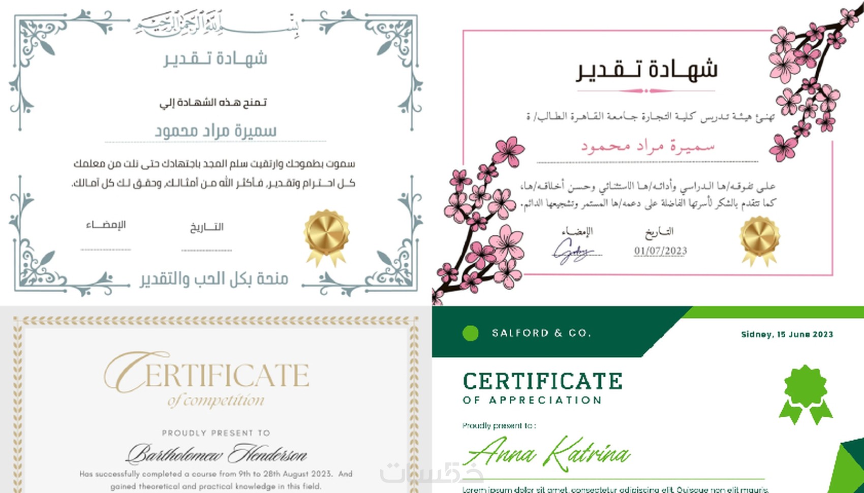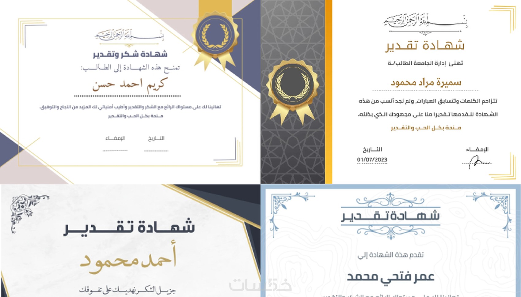 جميع انواع الشهادات (شهادات شكر وتقدير - شهادات تخرج - شهادات اتمام دورات وكورسات وتدريبات واي نوع من الشهادات)