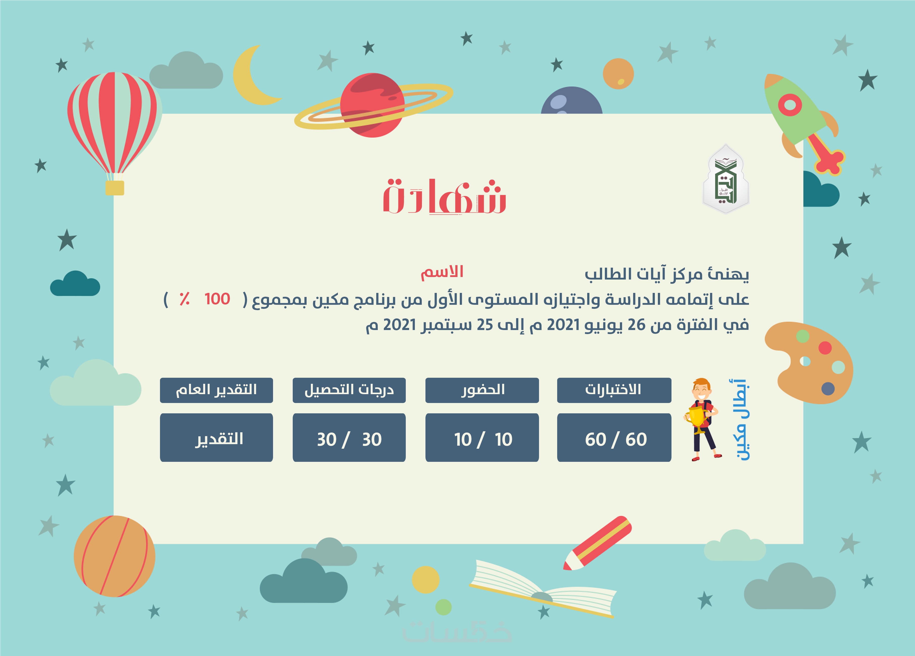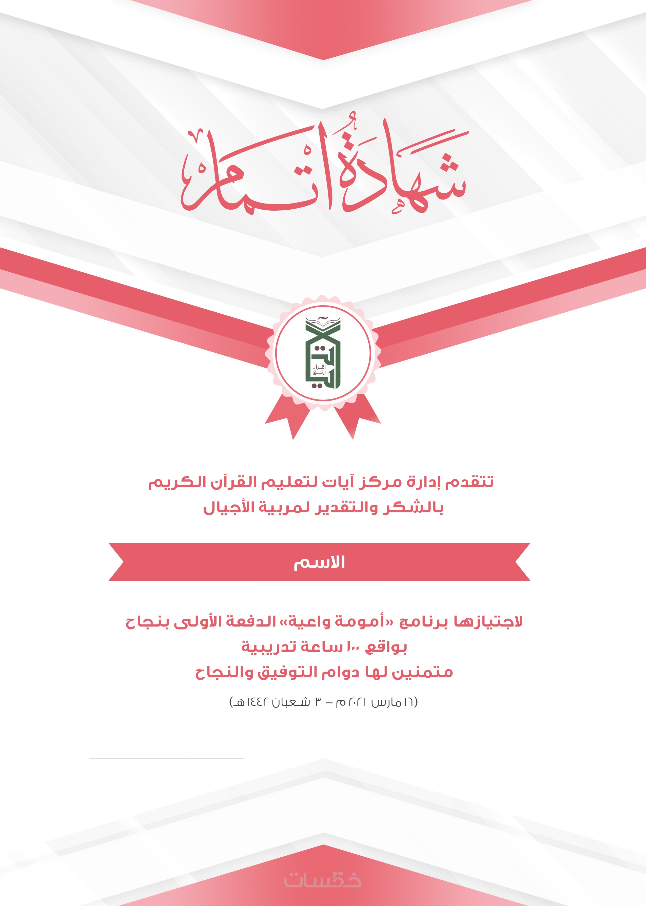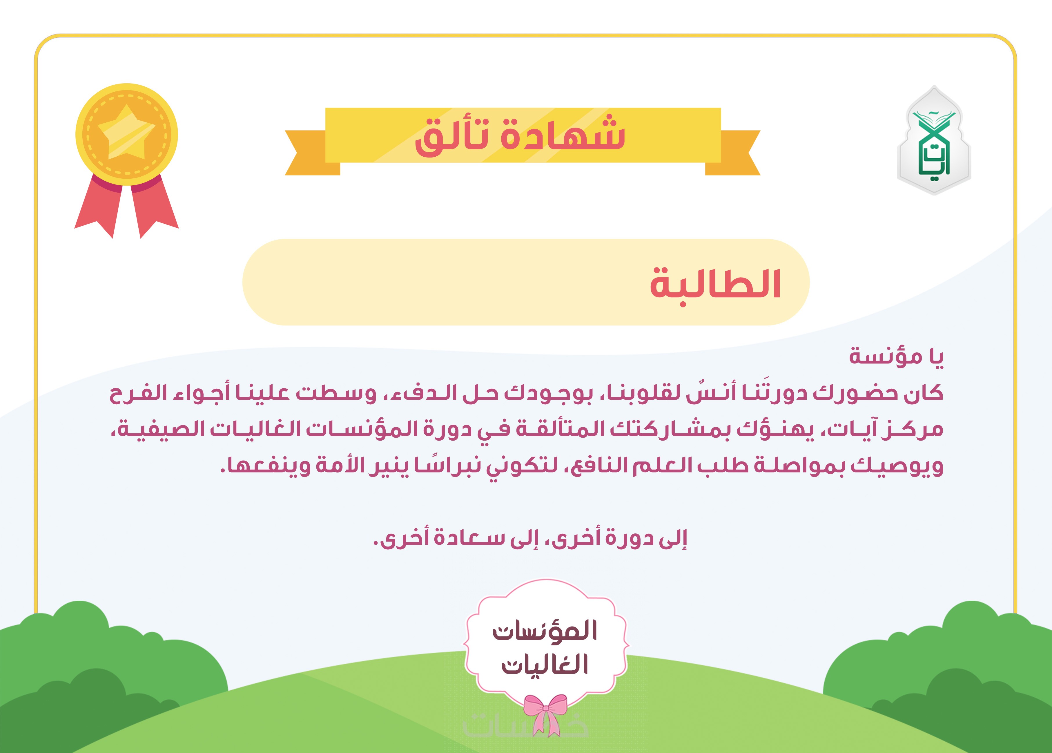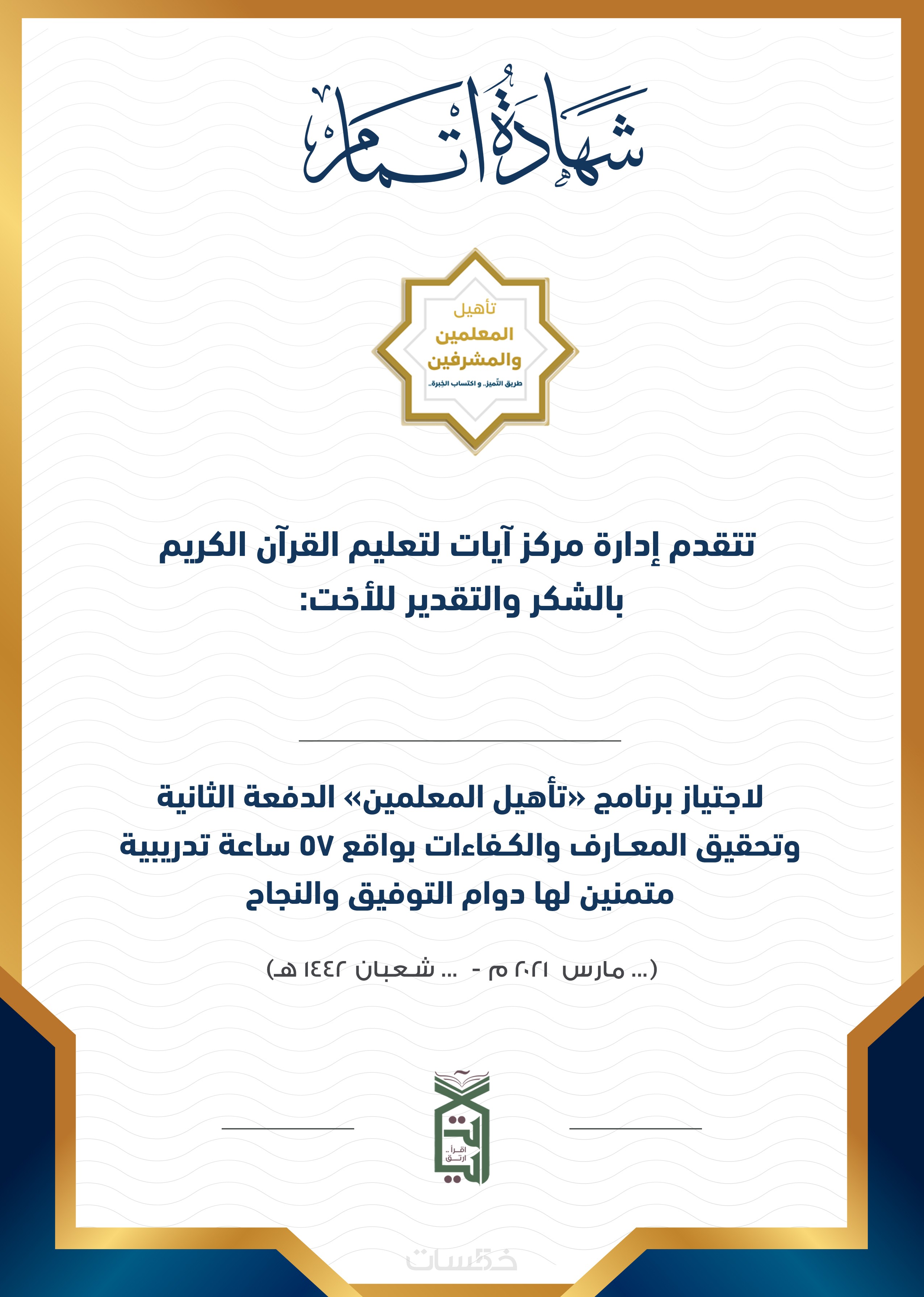 نسخة أخرى للشهادة بتنسيق أفقي أو رأسي