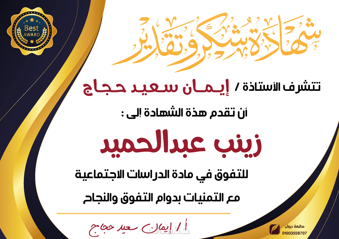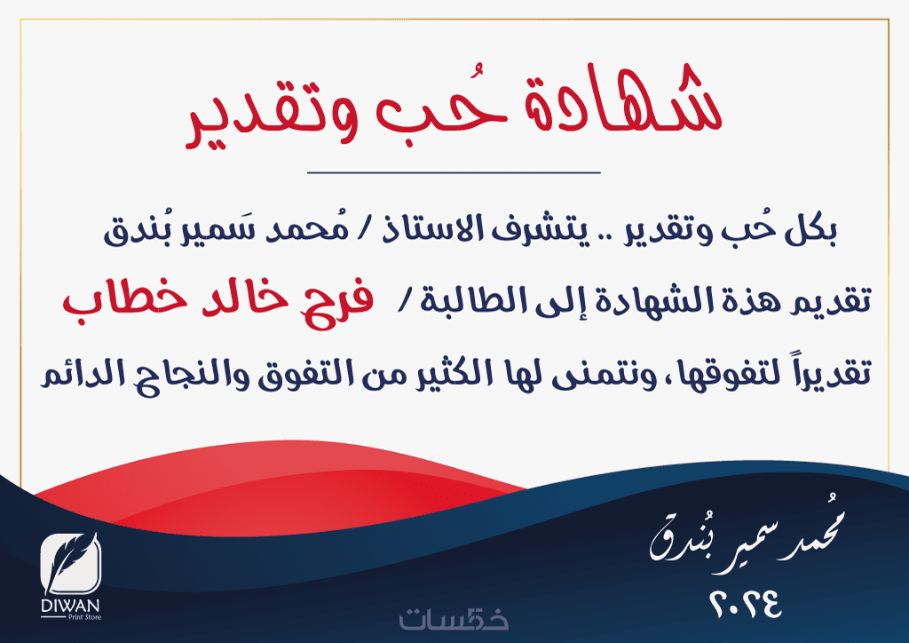 مرحبًا بكم في خدمتي لتصميم شهادات التقدير والتميّز بجودة احترافية وبأسعار تنافسية!