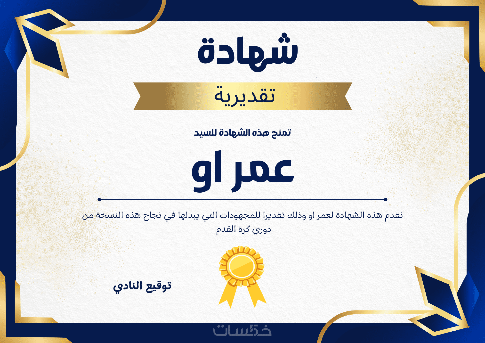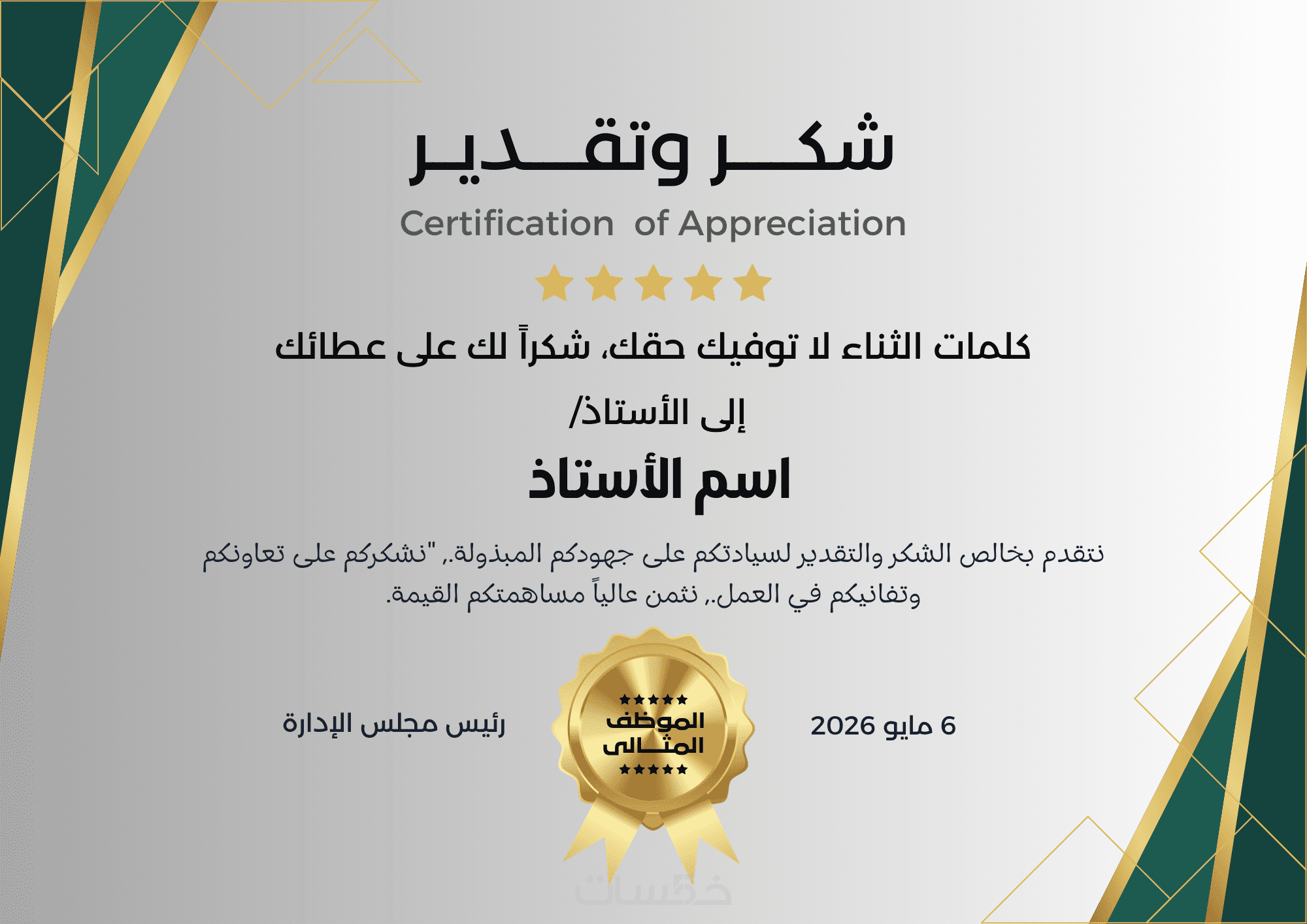 سأقوم بتصميم **شهادات تقديرية احترافية وجذابة** مناسبة لمختلف المناسبات مثل: