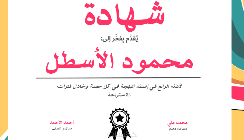 استخدام خطوط عربية وأجنبية مميزة و استخدام ألوان تتناسب مع نوع الشهادة.