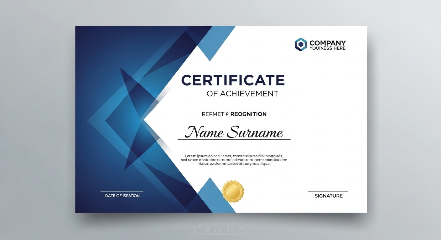 تصميم شهادة أمامية بصيغة جذابة واحترافية.