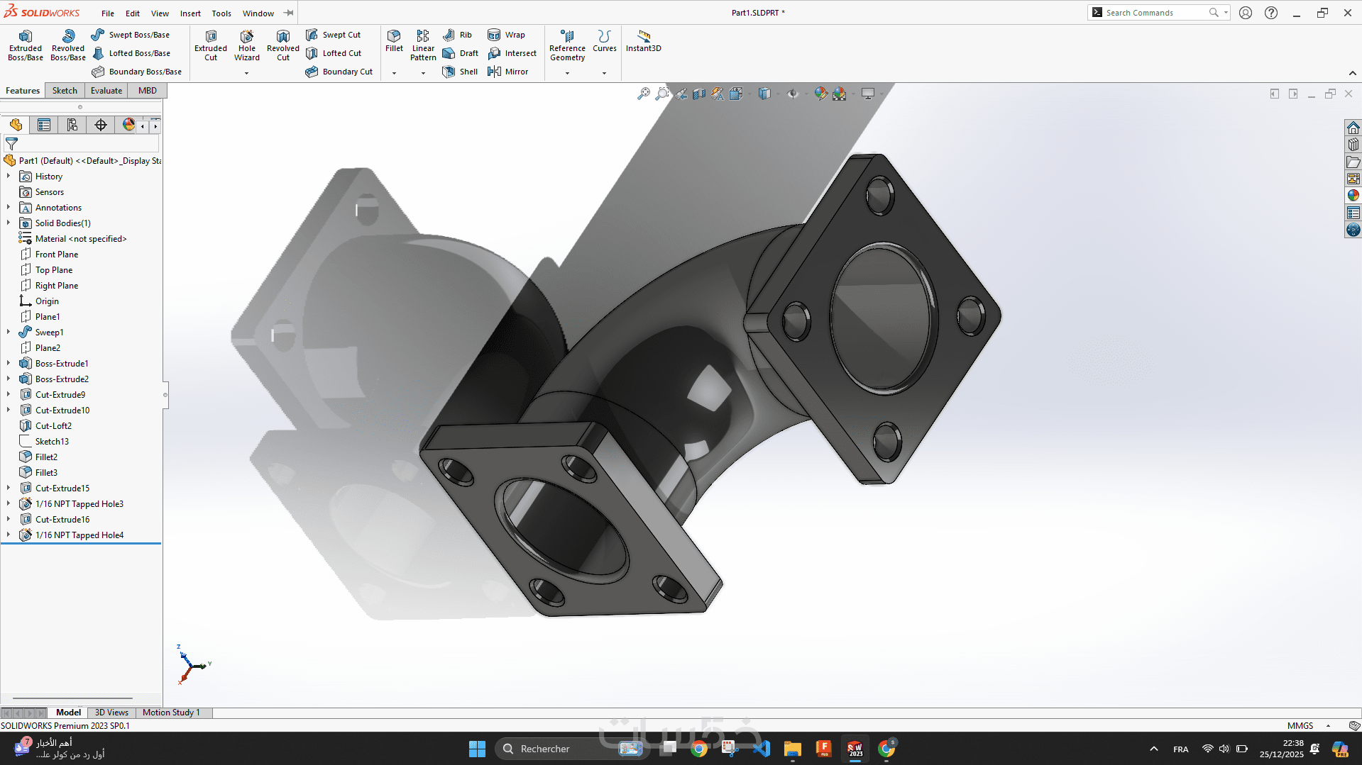 تصميم قطعة ميكانيكية واحدة ثلاثية الأبعاد باستخدام SolidWorks