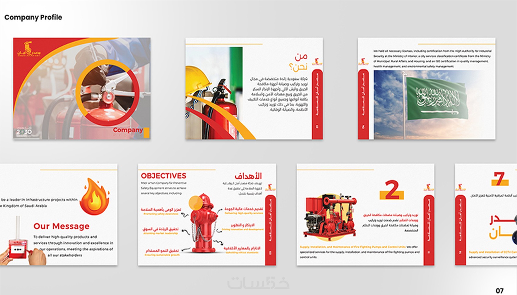 تقديم بروفايل شركة مكون من (اضافة اللغة الانجليزية-اضافة لينكات السوشيال ميديا) يتكون من ( 10 ل 15 )