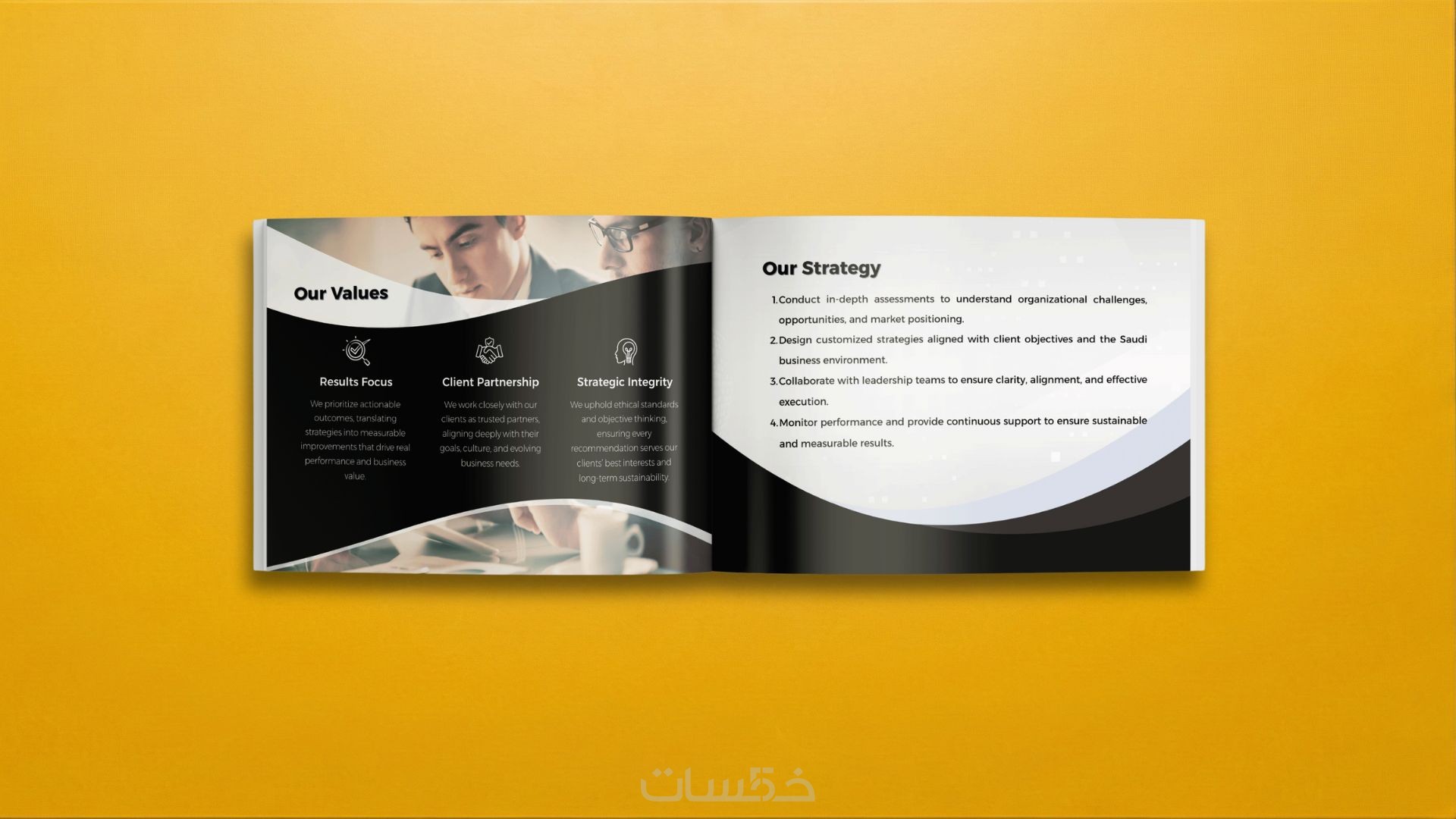 ستحصل على بروفايل شركة او مؤسسة احترافي ١٢ صفحة كتابة مع تصميم جاهز الموجود بالصورة، سأقوم بتعديله وتخصيصه بالكامل مع الصور ليناسب عملك.
