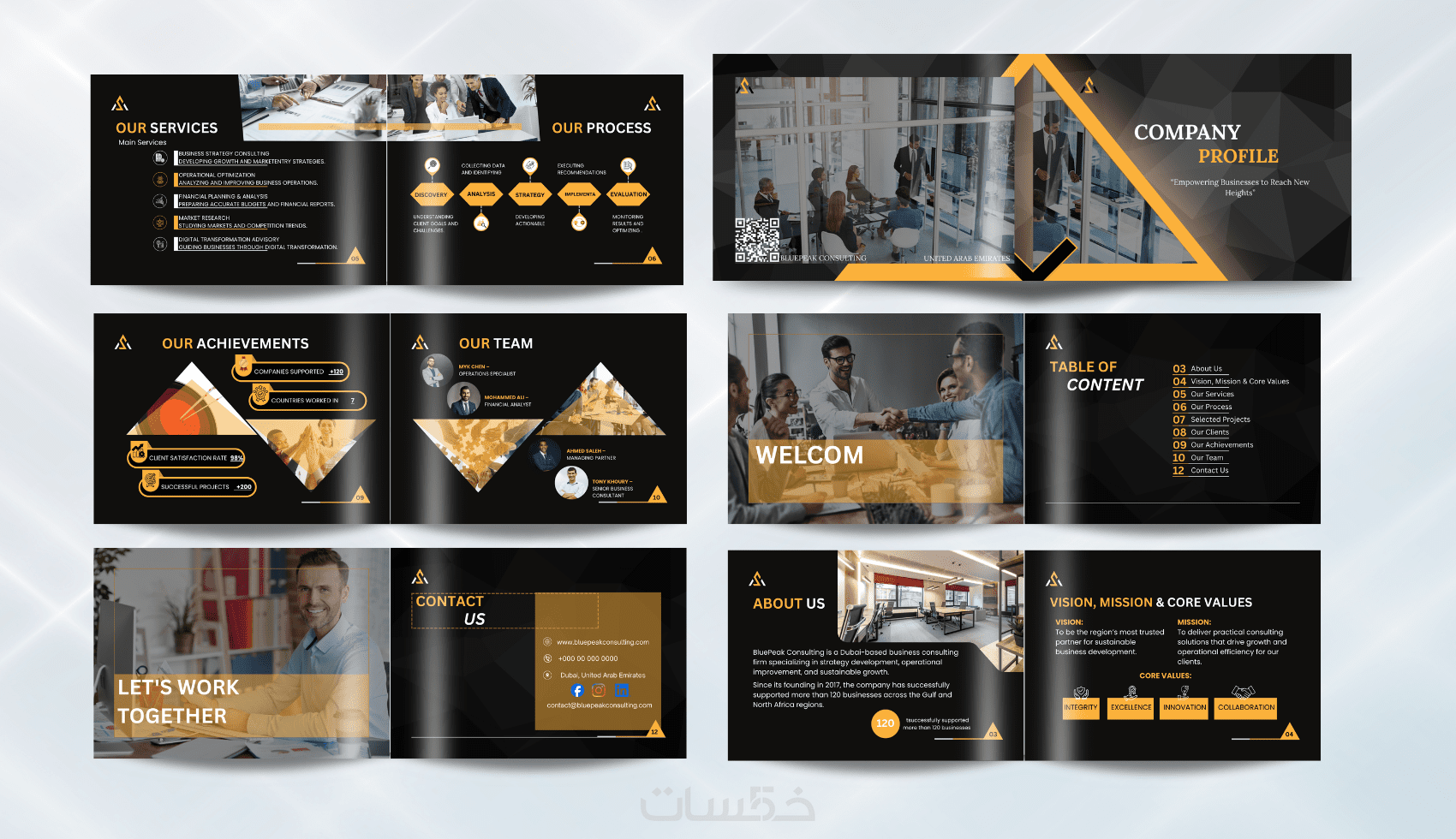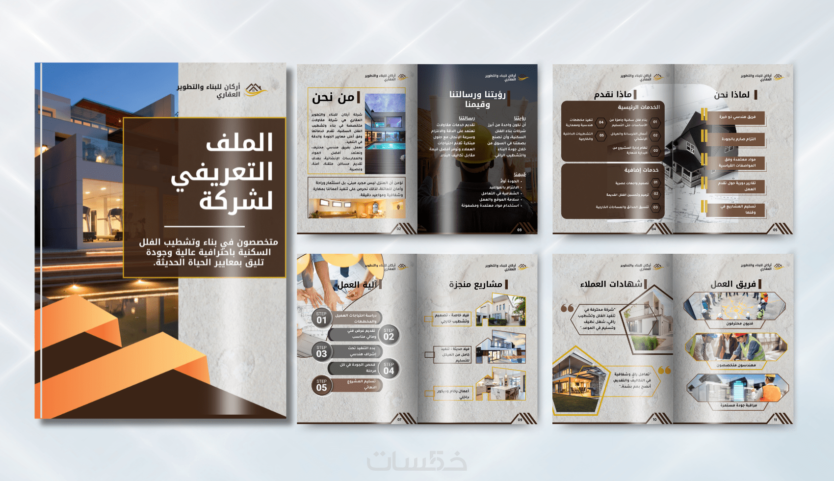 أنا مصمم متخصص في تصميم Company Profiles والعروض التقديمية للشركات، أقدم لك تصميم احترافي يعكس هوية نشاطك بأسلوب عصري ومنظم يليق بعلامتك التجارية.