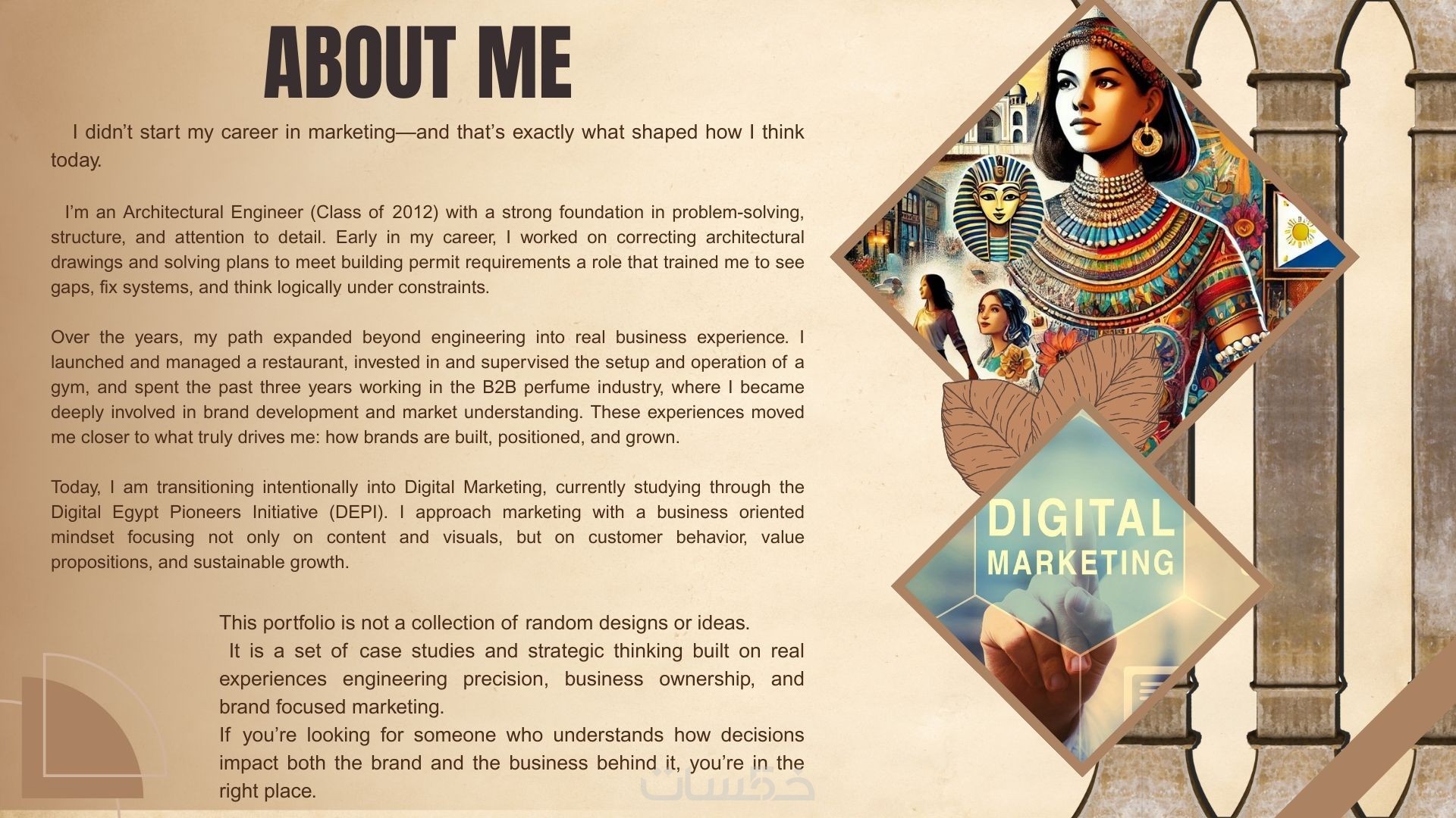 أهتم بأن يشعر العميل الذي يراه أنه أمام كيان احترافي يمكن الوثوق به، من خلال تصميم يعكس شخصيتك، وينظم رسالتك، ويبرز قيمتك الحقيقية.