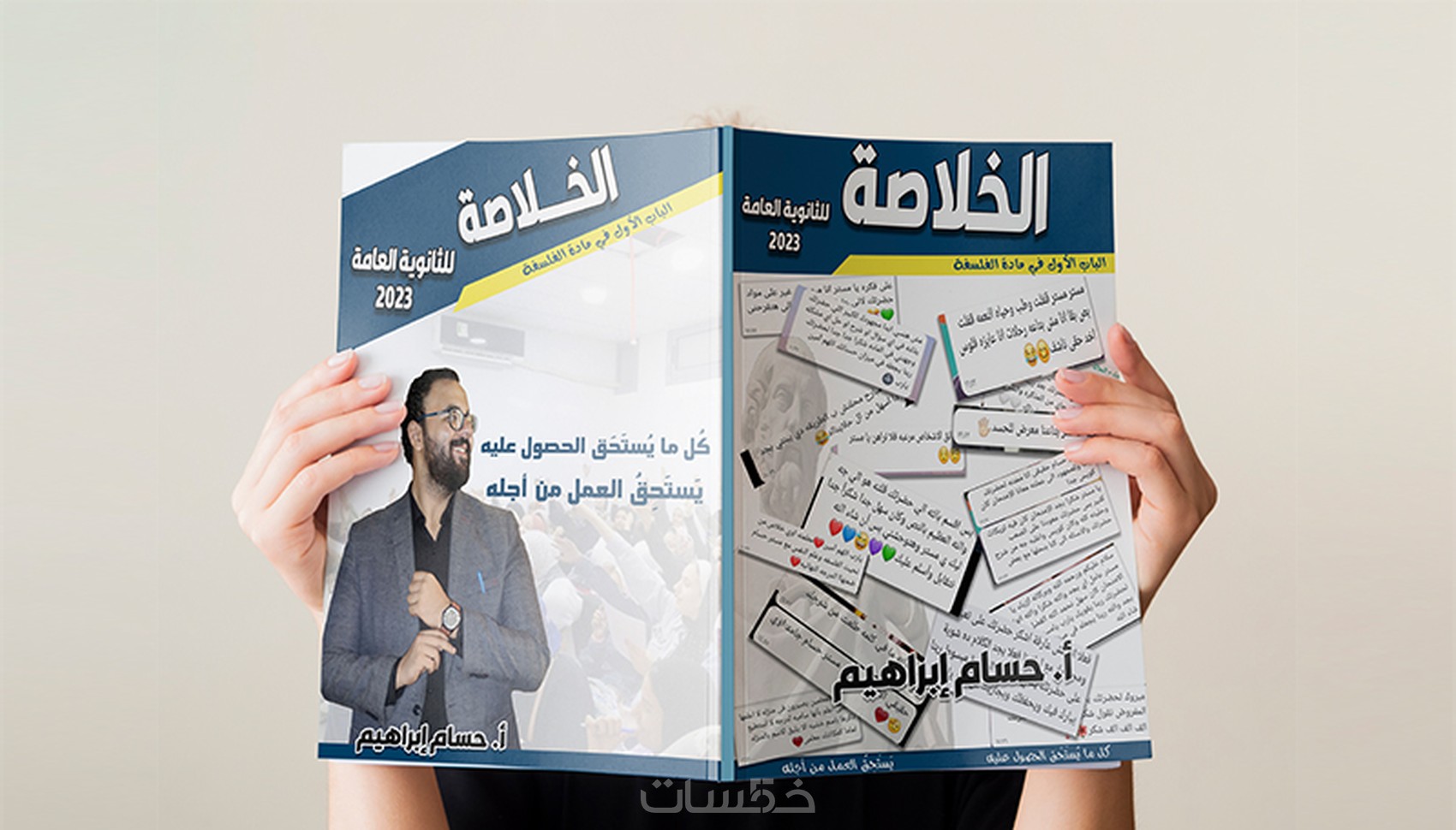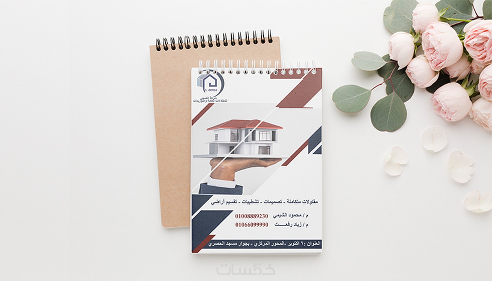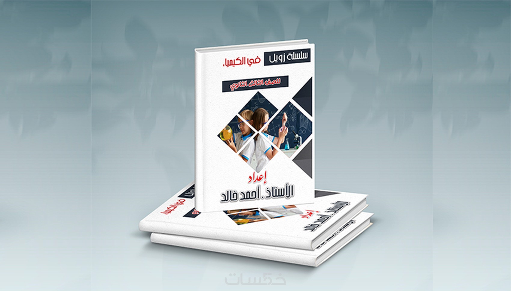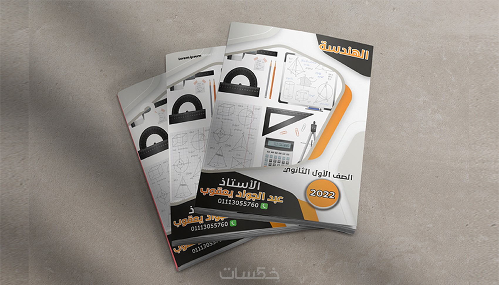 تصميم قالب (Mockup) للغلاف لعرض الشكل النهائي بعد الطباعة بشكل إحترافي.