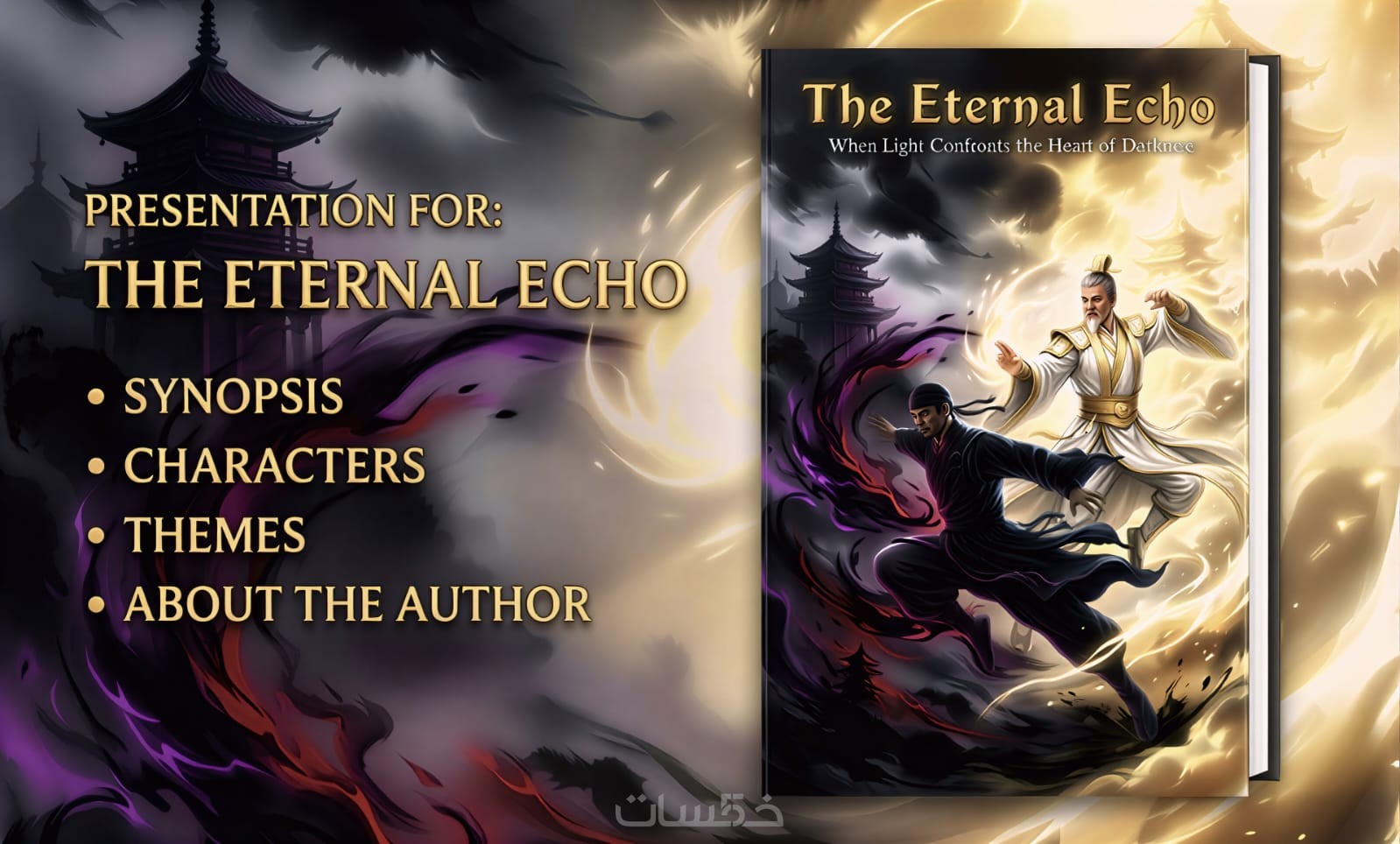 الوصف: سأقدم لك نموذجاً ثلاثي الأبعاد لغلافك لتستخدمه في الترويج لعملك عبر منصات التواصل الاجتماعي.