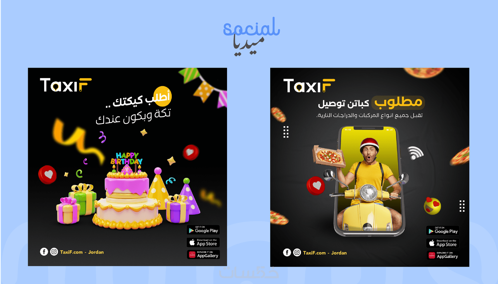 - مقاسات مخصصة: تصميم يناسب المنصة الاجتماعية المطلوبة (Instagram، Facebook، إلخ).