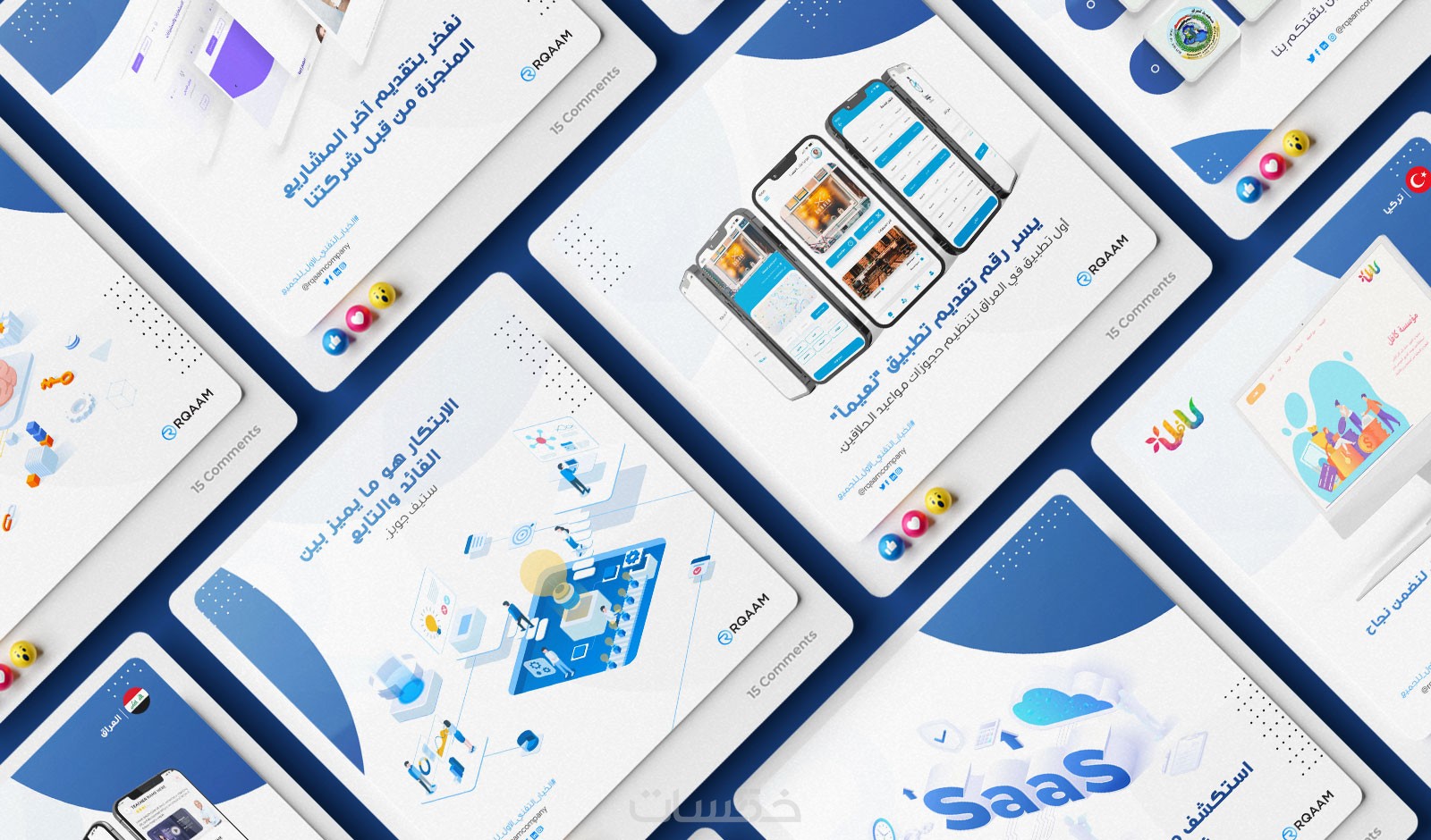 - يتم العمل ببرامج احترافية مثل Adobe Photoshop , Adobe illustrator ولا اتطرق الى العمل على قوالب مجانية اطلاقاً.