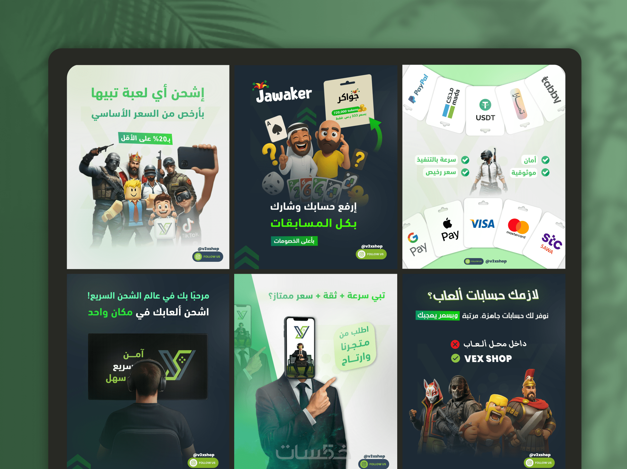 تصاميم مخصصة لمنصات التواصل الاجتماعي (انستقرام، فيسبوك، تويتر، سناب شات...).