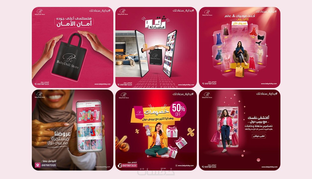 * التصميم بالمقاسات المختلفة التي تتناسب مع منصات السوشيال ميديا.