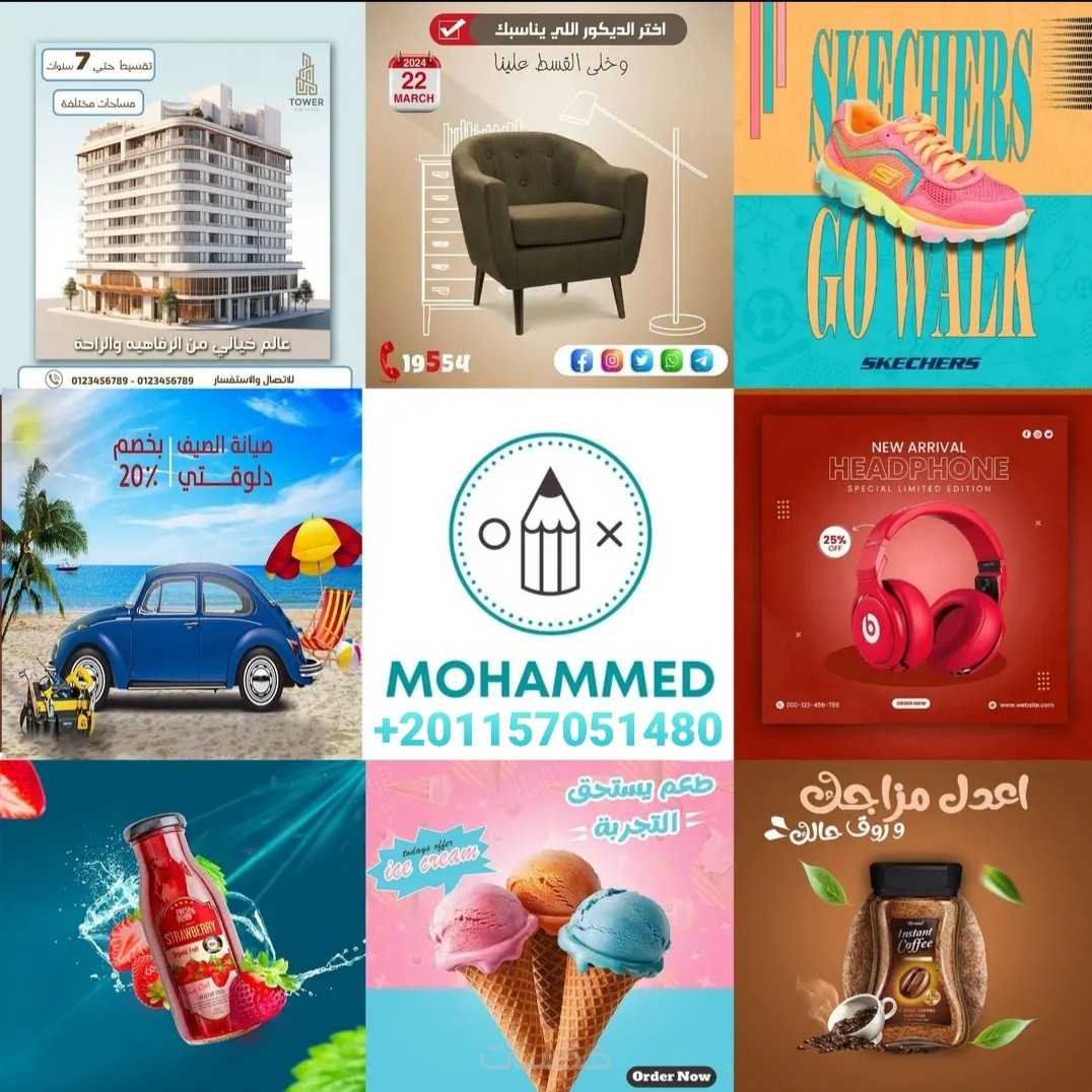 أنا مصمم جرافيك متخصص في تصميم إعلانات السوشيال ميديا (فيسبوك - إنستجرام - تويتر - لينكدإن)، أقدم لك تصميمًا احترافيًا بجودة عالية وبأفكار مبتكرة تناسب نشاطك التجاري.