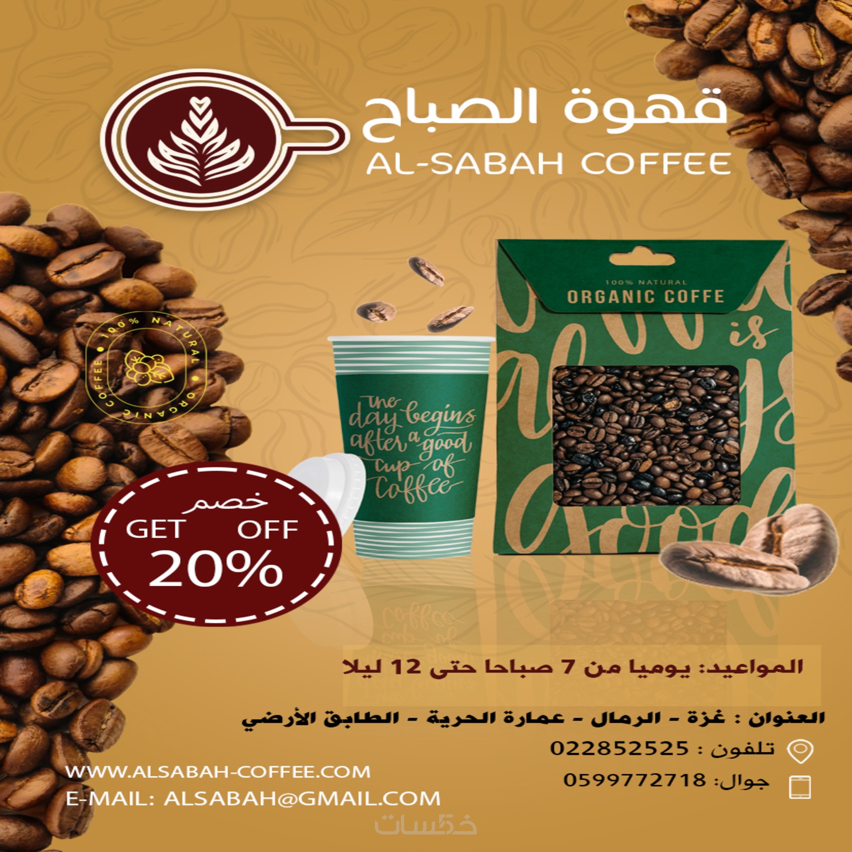 تصميم إعلاني إبداعي لمشروب قهوة، يركز على إبراز المنتج بطريقة جذابة باستخدام الحركة البصرية، الإضاءة، الحجم 1700*1700 بقدم 6تصميم (HD,FHD) وصيغة الملفات التي سيحصل عليها المشتري (...PNG,PSD,PDF) أو غيرها