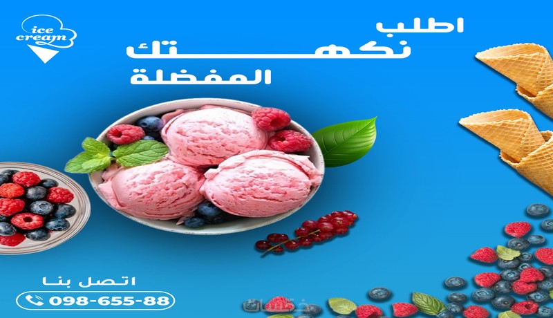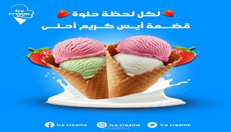 خدمة تصميم صور آيس كريم احترافية وجذابة مخصصة للنشر على مواقع التواصل الاجتماعي مثل إنستغرام وفيسبوك، باستخدام برنامج Adobe Photoshop.
