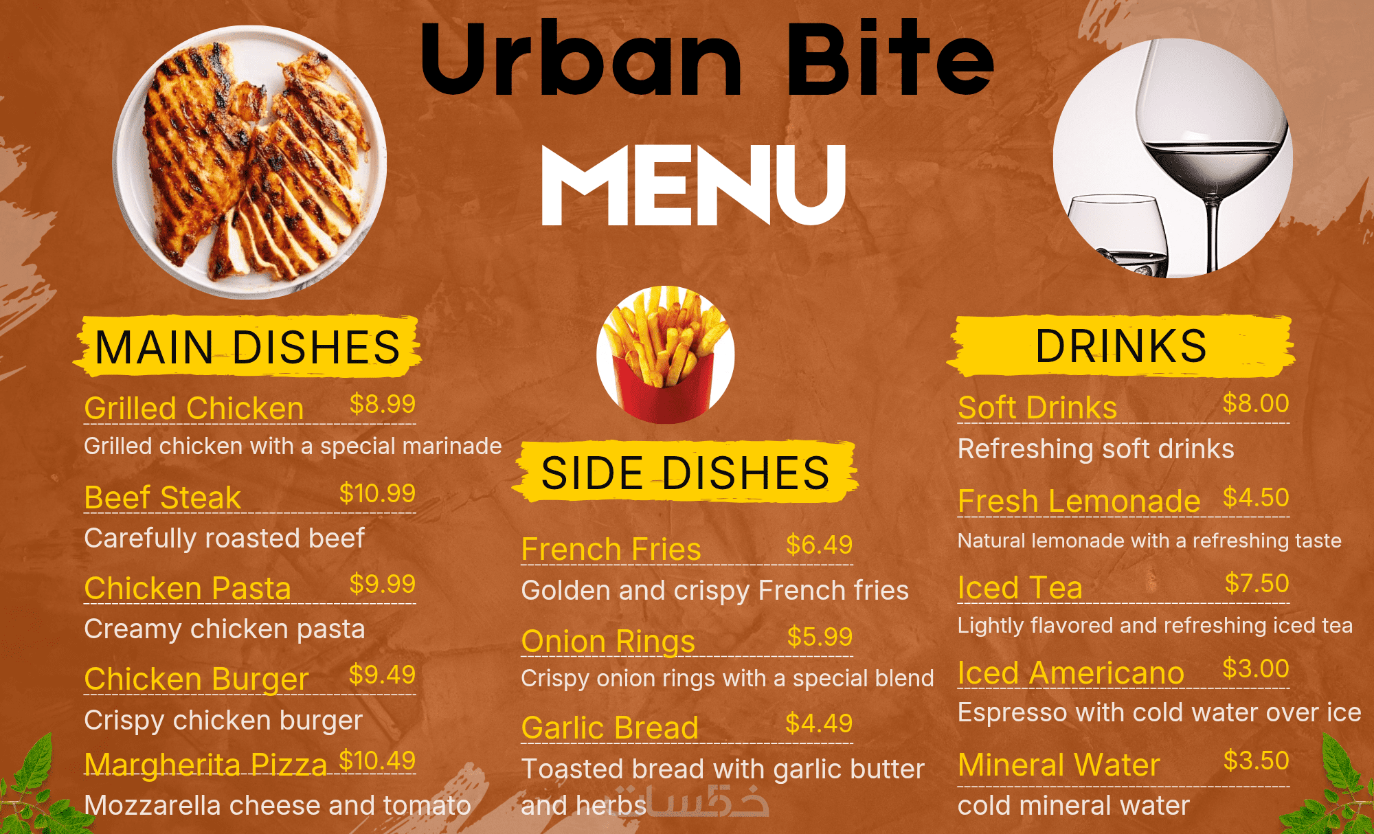 تصميم مخصص حسب نوع المشروع (مطاعم، مقاهي، عيادات، صالونات، منتجات، عروض، منيو.....).