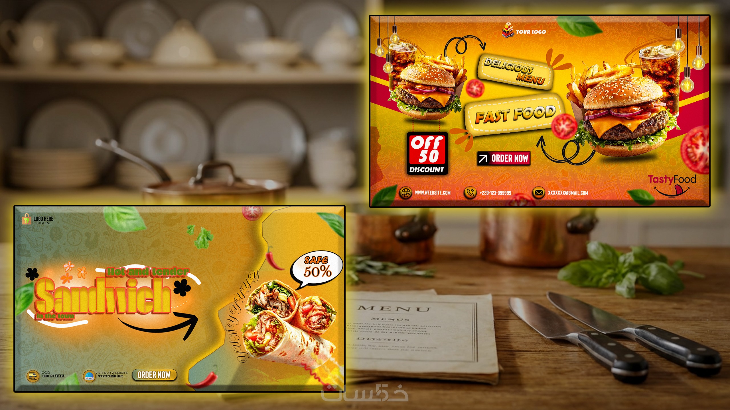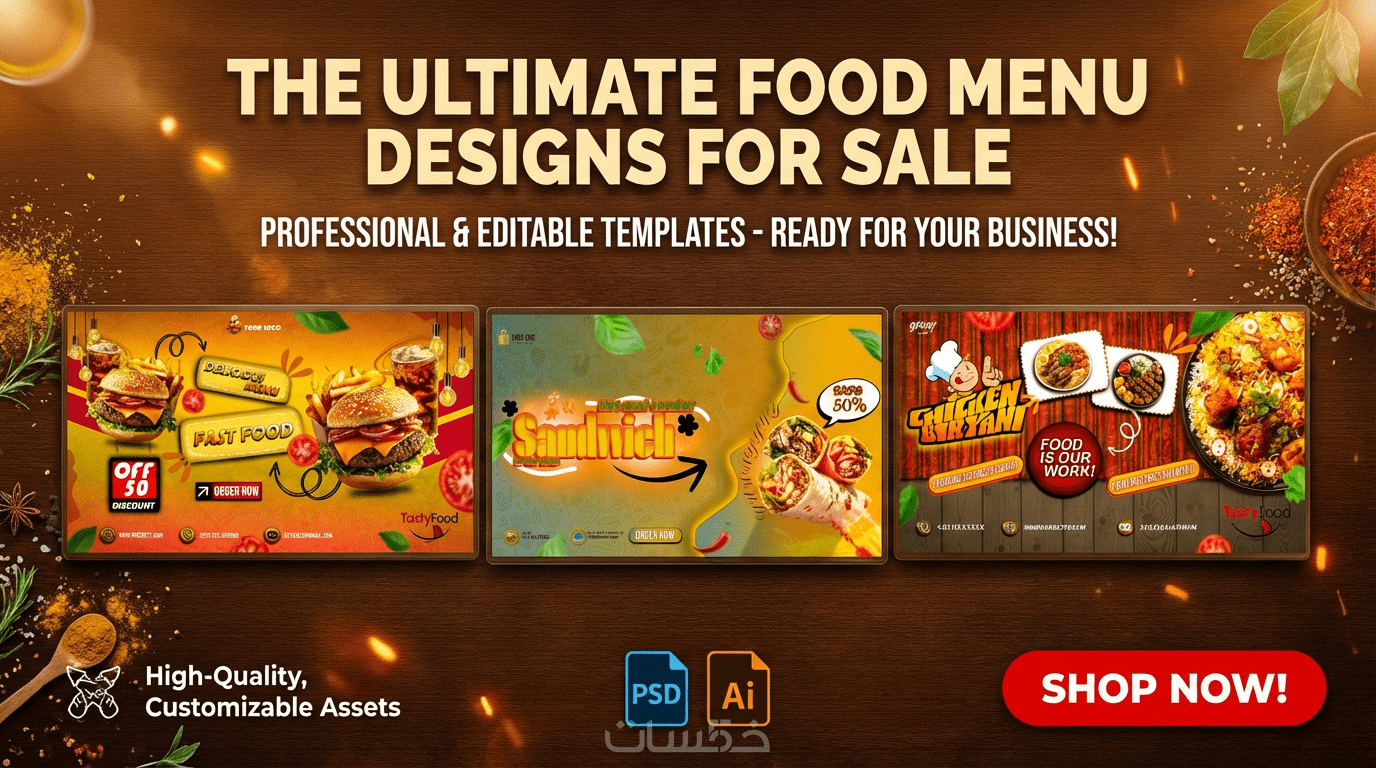 التصميم الناجح للمطاعم والمتاجر المعروفة ليس مجرد صورة، بل هو فن إثارة الشهية! سأقوم بتصميم بانرات وإعلانات احترافية لمطعمك و متجرك الخاص (فيسبوك، انستغرام) بستايل عصري يبرز جودة أطباقك ويشجع الزبائن على الطلب فوراً.