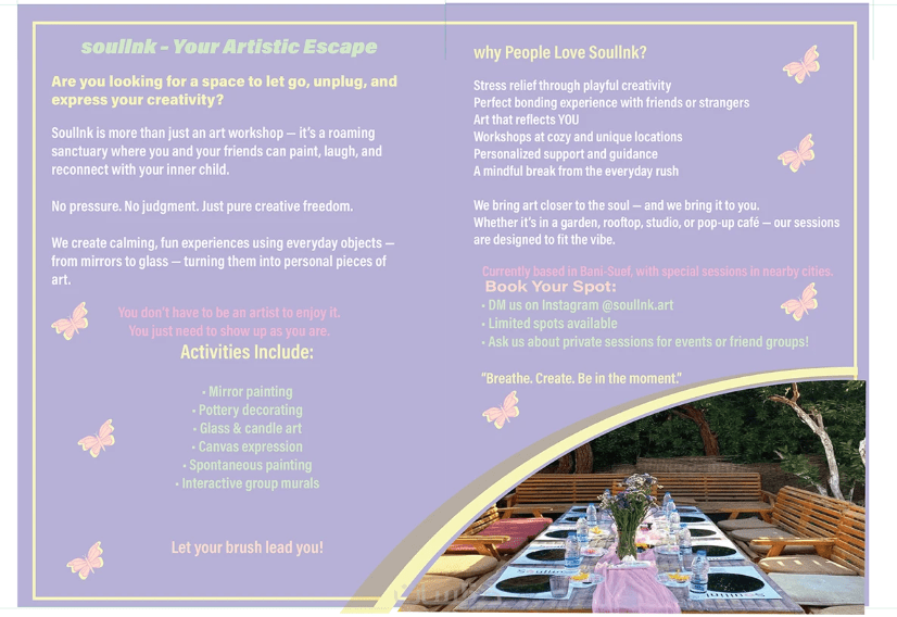 بشتغل على تصميم بروشورات بشكل بسيط ومنظم، مع اختيار ألوان وخطوط مناسبة لنوع النشاط، بحيث يوصل الفكرة بسهولة لأي حد يشوفه.