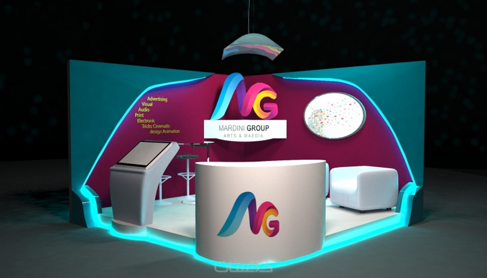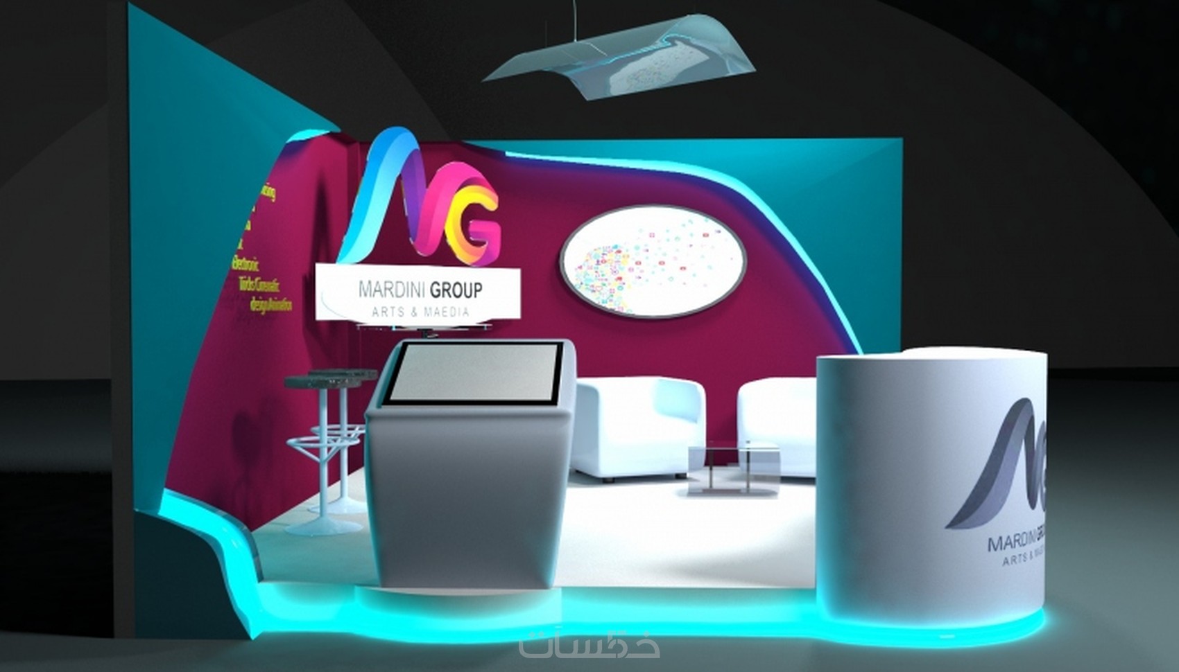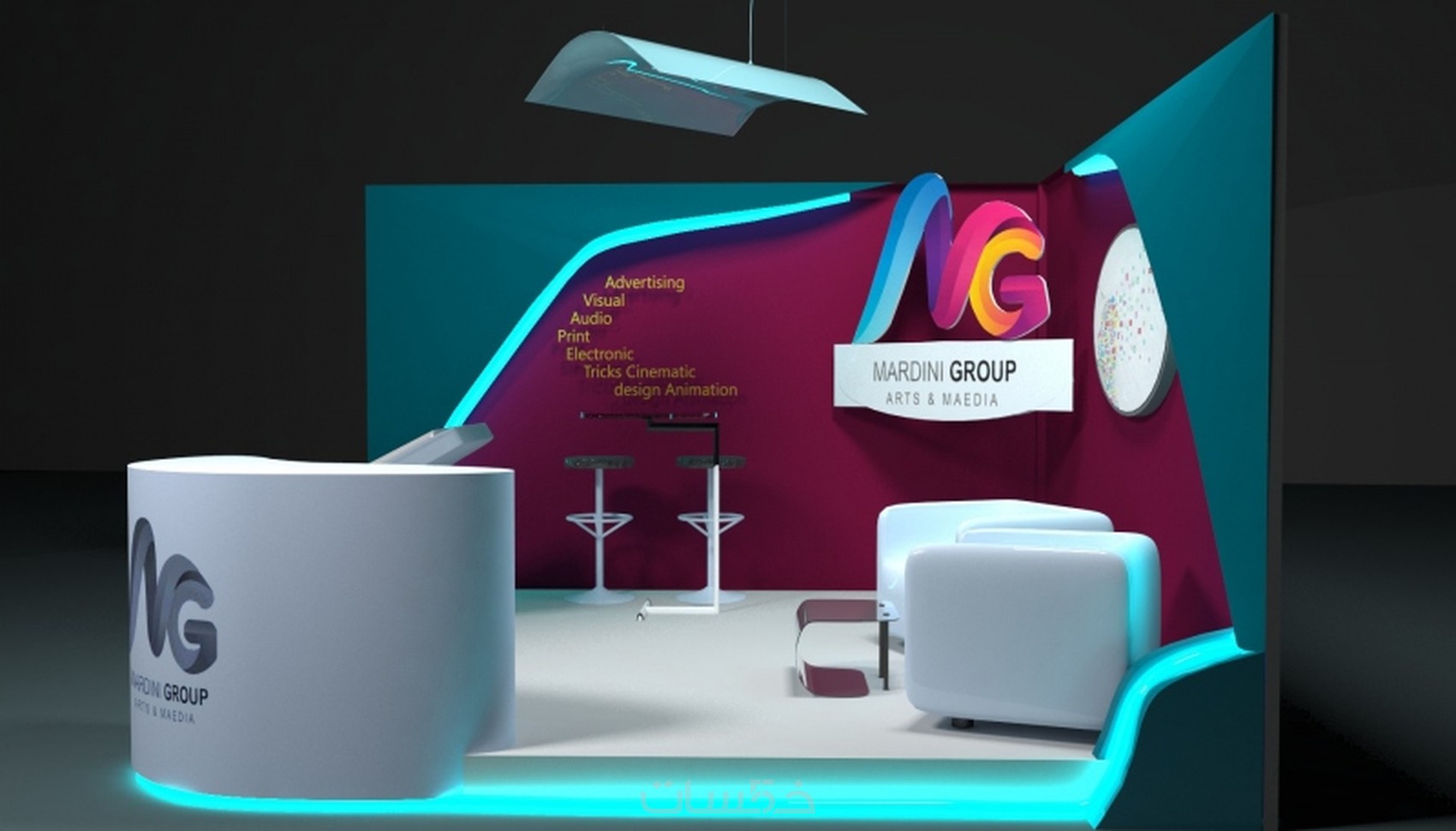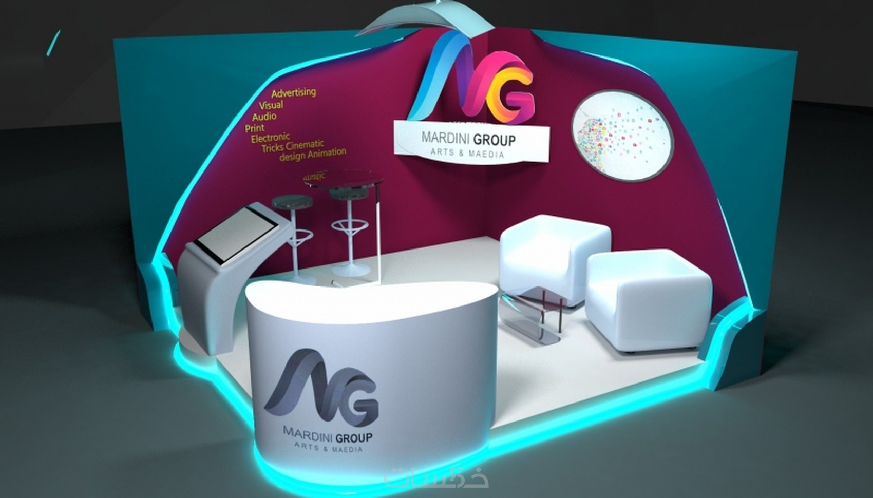 تصميم ستاند معرض مبدع ثلاثي الأبعاد لأي اختصاص أو أي مجال من مجالات الحياة مع الاضاءة والخامات والألوان التي تريدها واخراجها من كل جهات المنظور ( يمين - يسار - فوق - منظور )ومع وضع الأثاث المناسب ( منضدة- كراسي ........ )