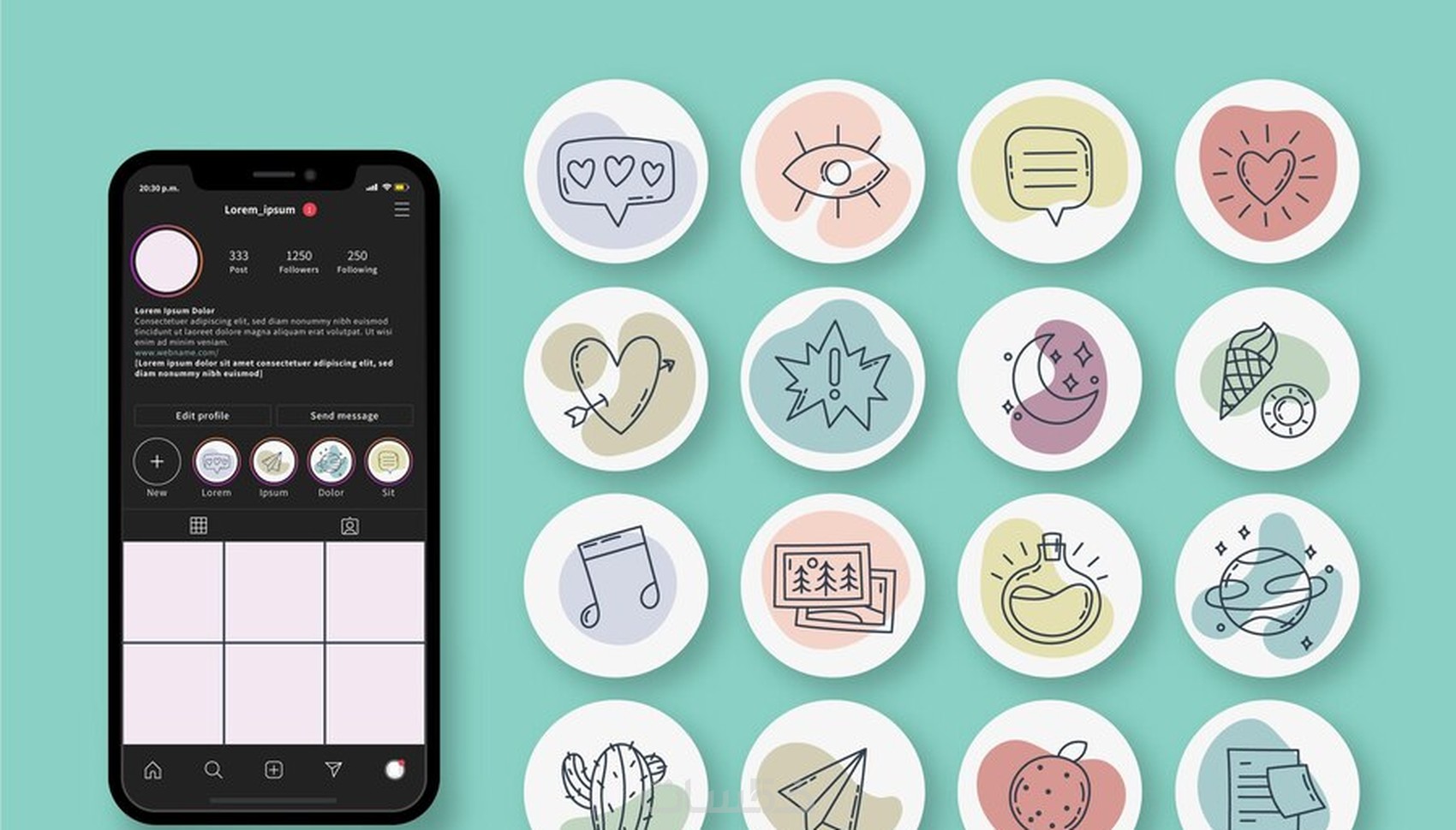 تصميم الهايلايت يكون بالتناسق مع الوان الحساب