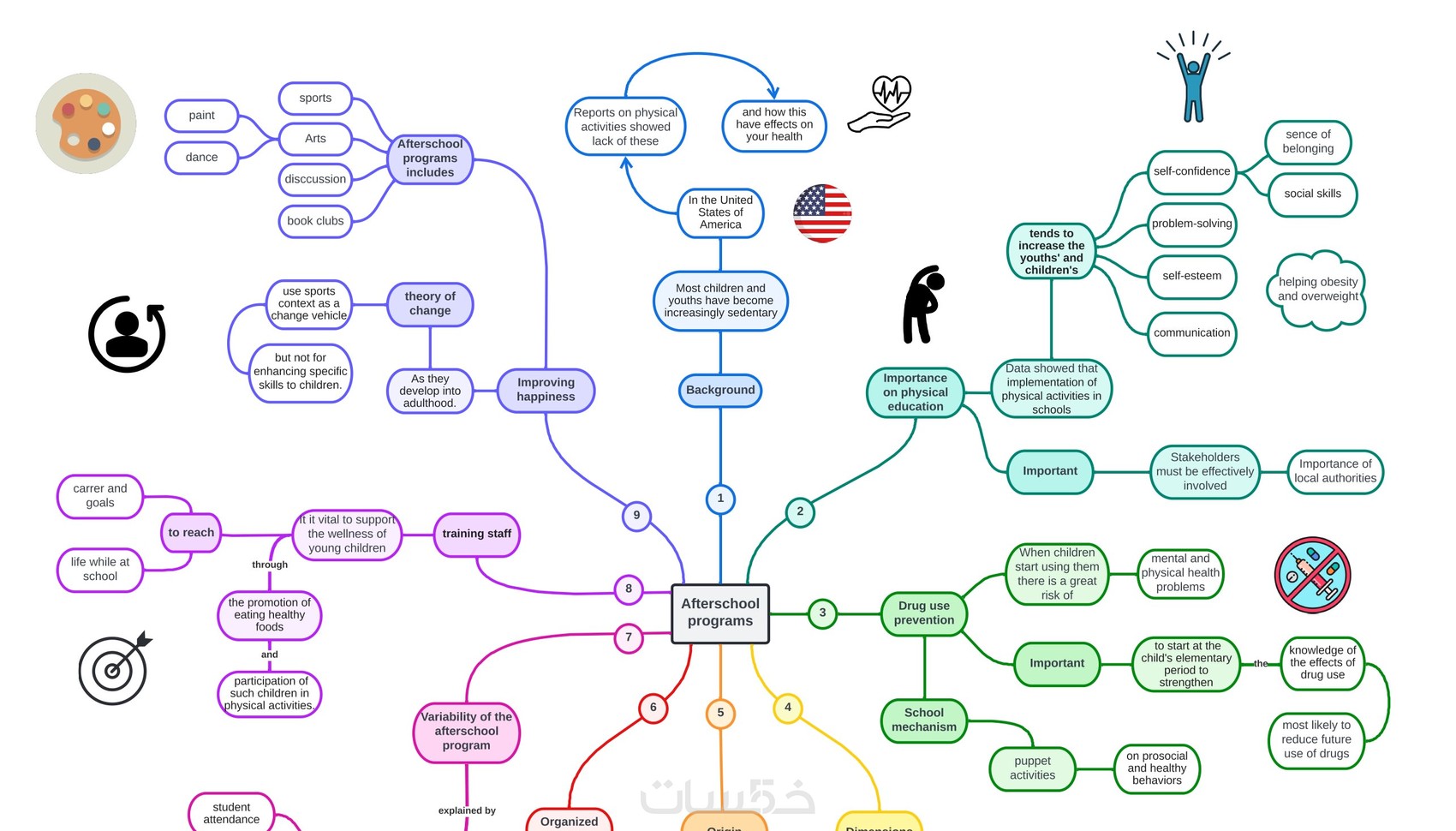 تحتوي الخريطة الذهنية على المعلومات التي قدمها العميل ، والخريطة الذهنية احترافية وحديثة ونظيفة ، مع الكثير من الرسوم التوضيحية والألوان المعبرة التي تجعل العمل فريدًا وثابتًا وحصريًا.