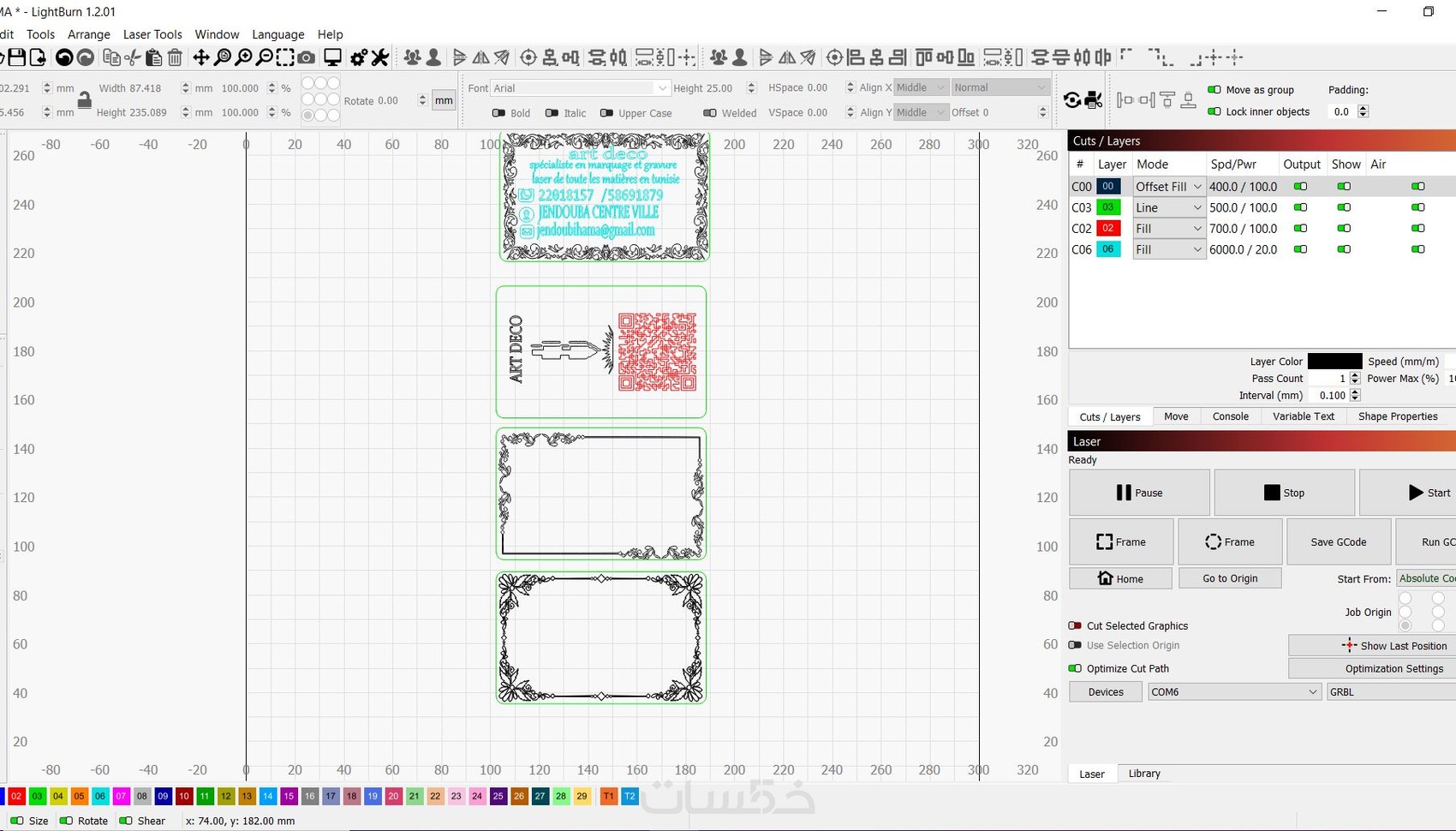 أعمل على برنامج lightburn الشهير في التصميم للنقش و القص على جميع الخامات