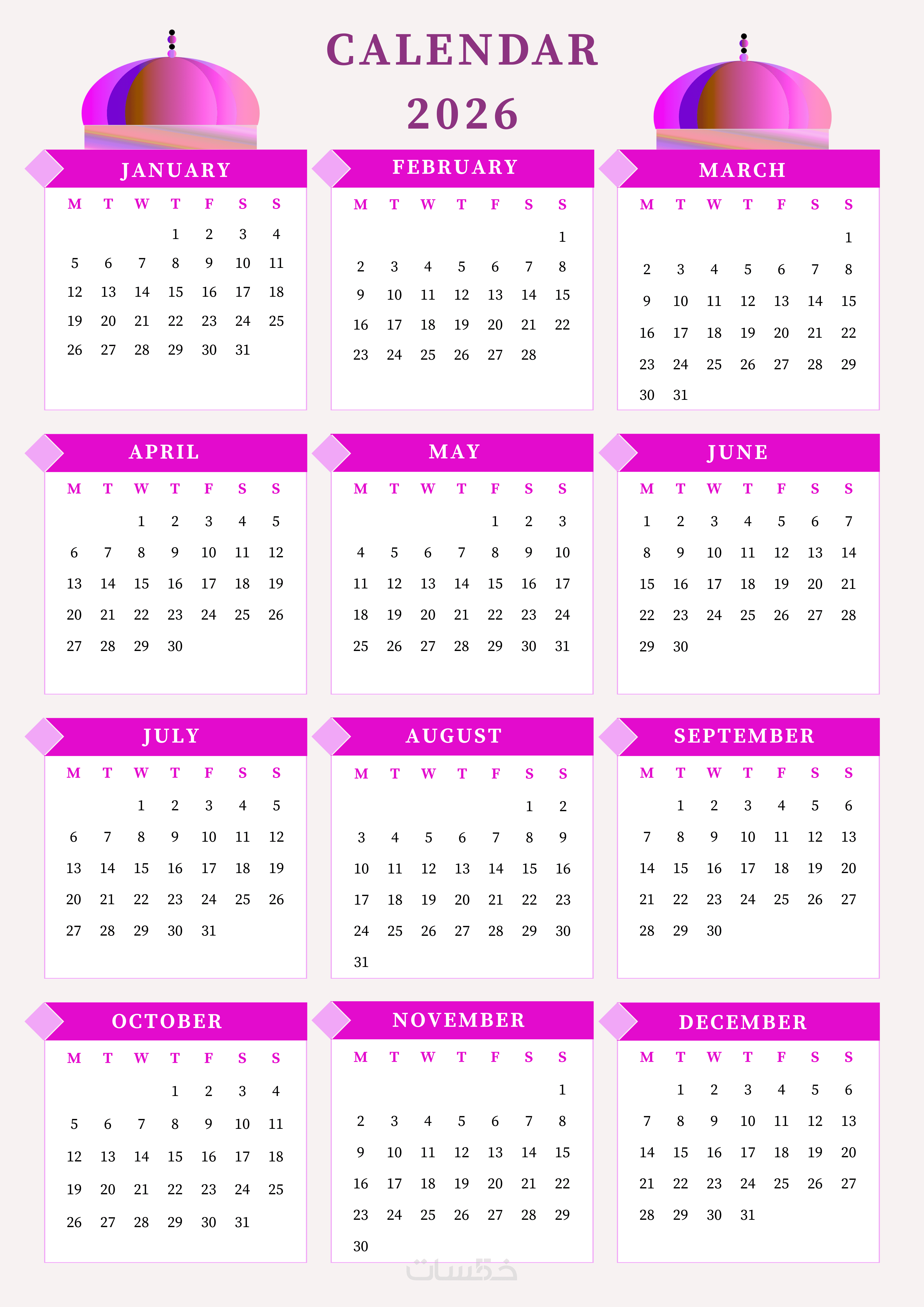 تقويم هرمي 12 صفحة تصميم وجهين بما في ذلك أيام العطل الكبرى جاهز للطباعة بتنسيق jpeg و pdf