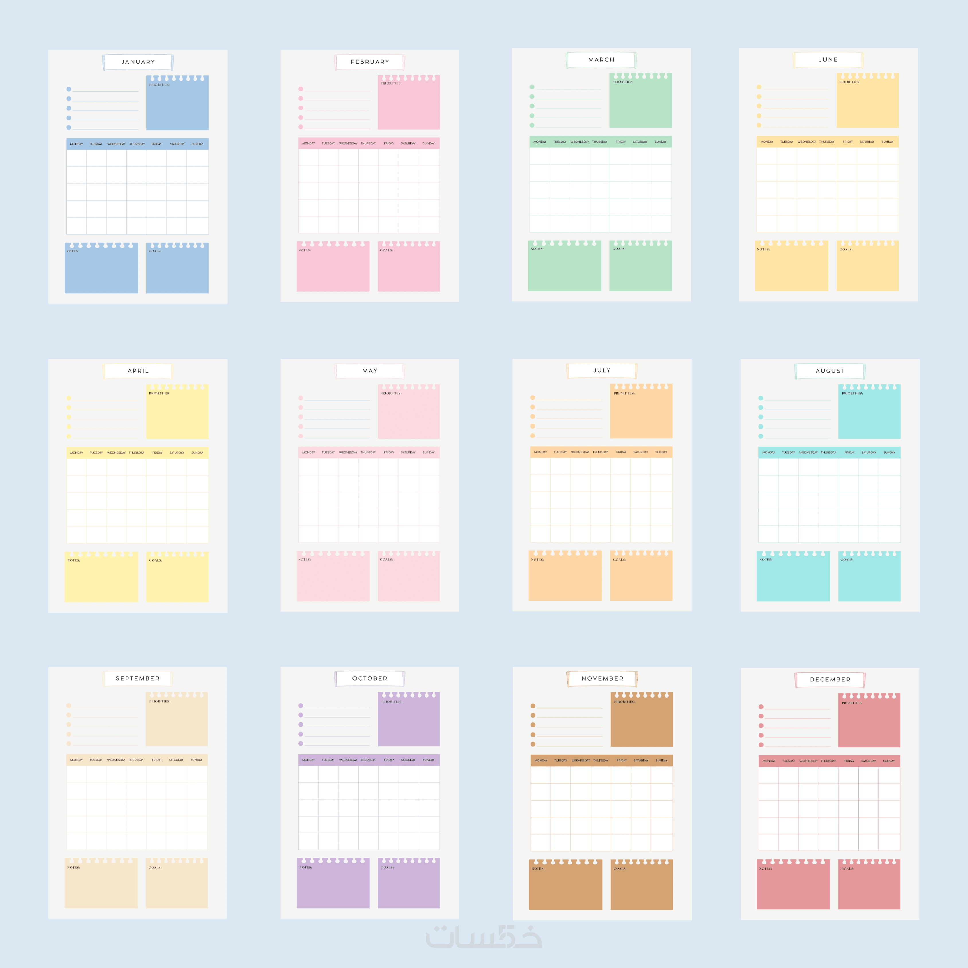 تقويم هرمي 12 صفحة تصميم وجهين جاهز للطباعة بتنسيق jpeg و pdf