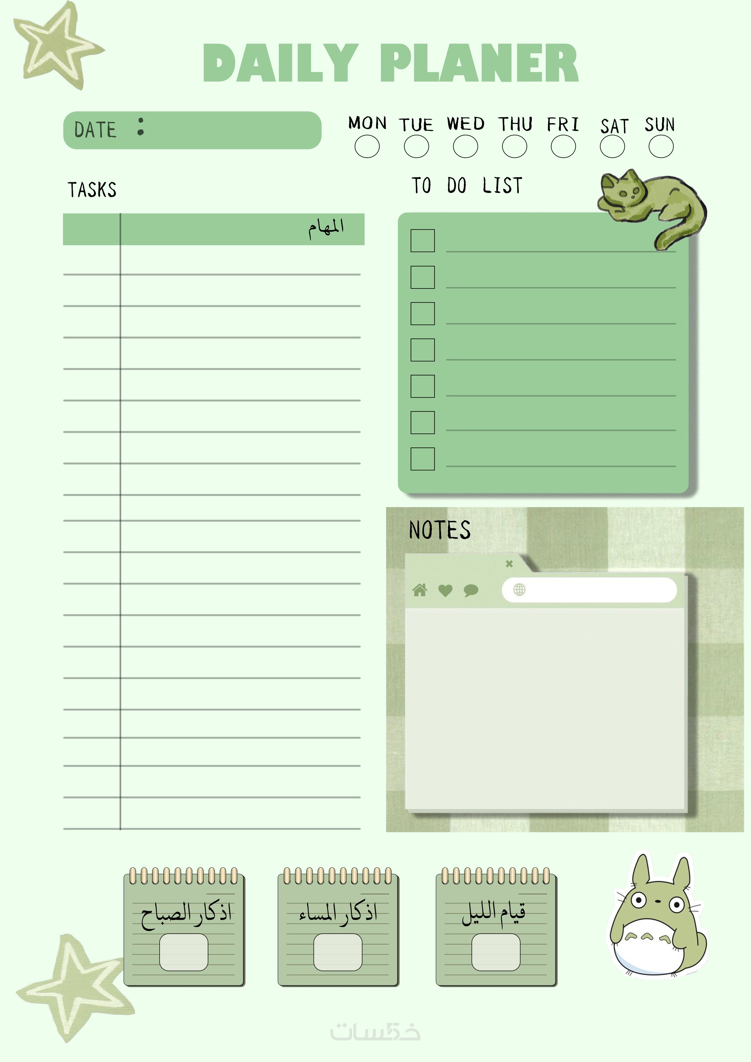 قوائم مهام وأولويات + مساحة للملاحظات.