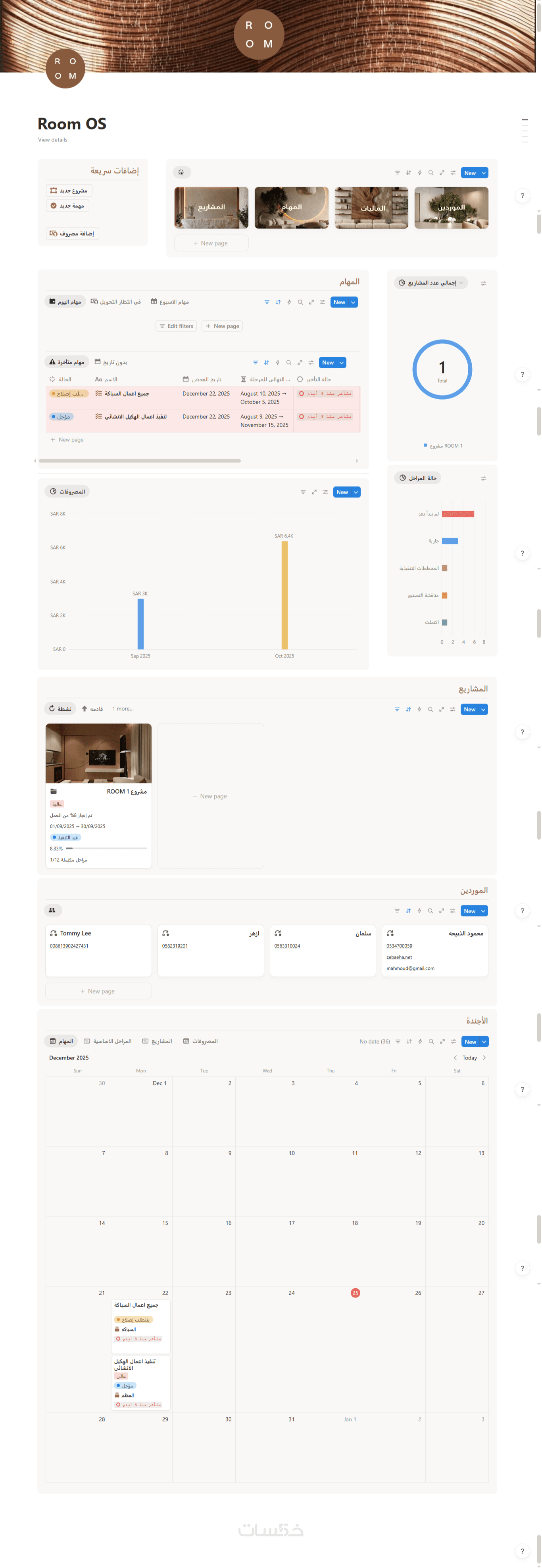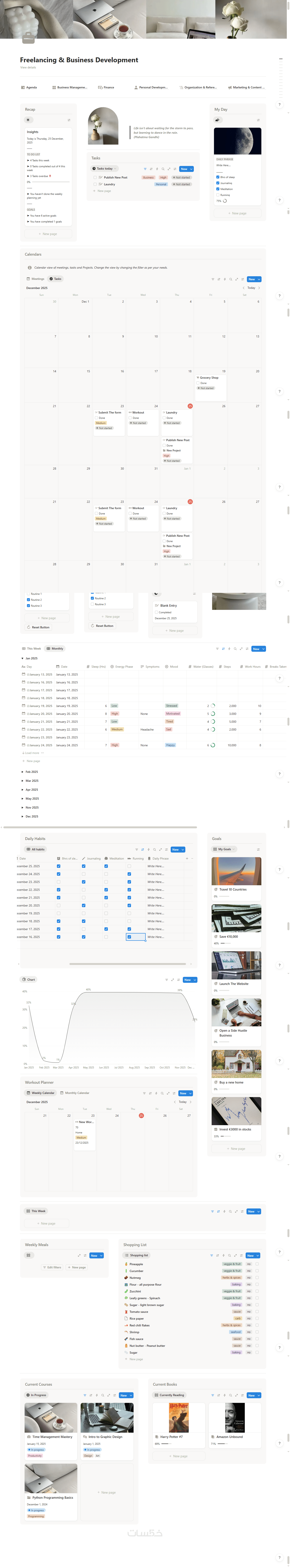 قالب Notion من 5 صفحات مع تنظيم شامل, قواعد بيانات مترابطة مع تصميم جذاب و وظائف عملية