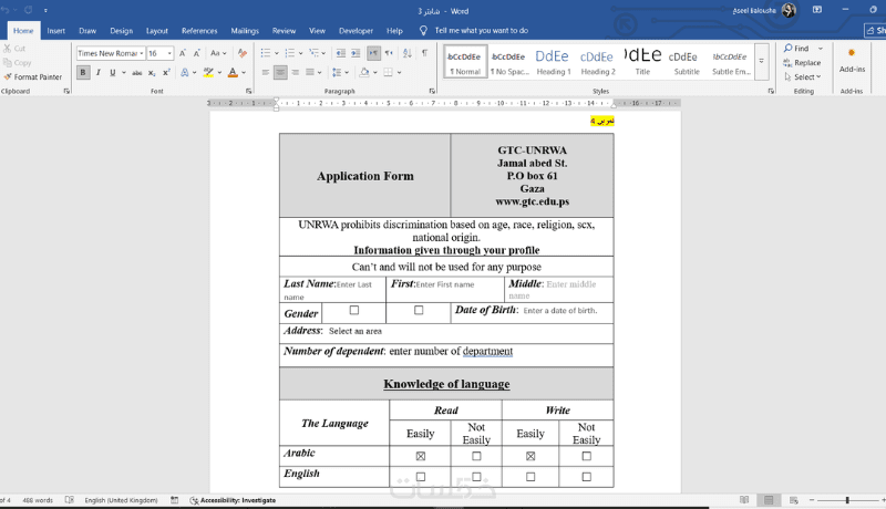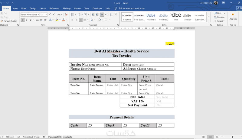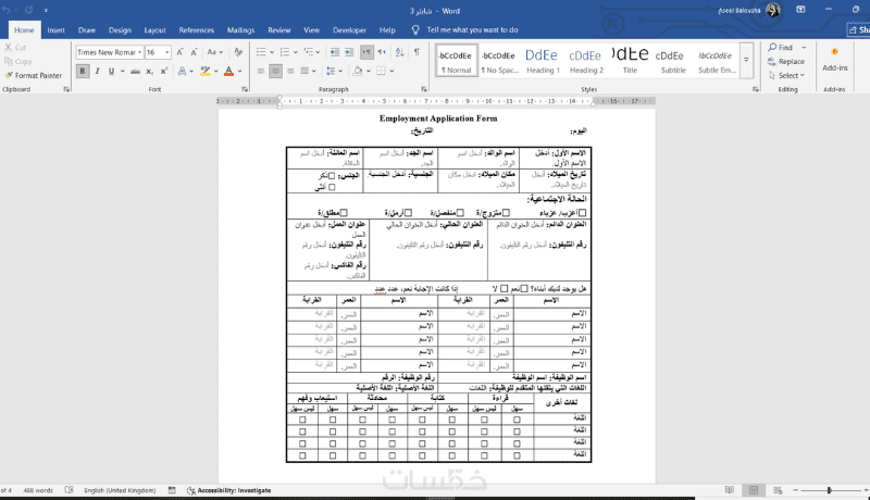 تنسيق احترافي للجداول والخانات ليسهل تعبئة البيانات.