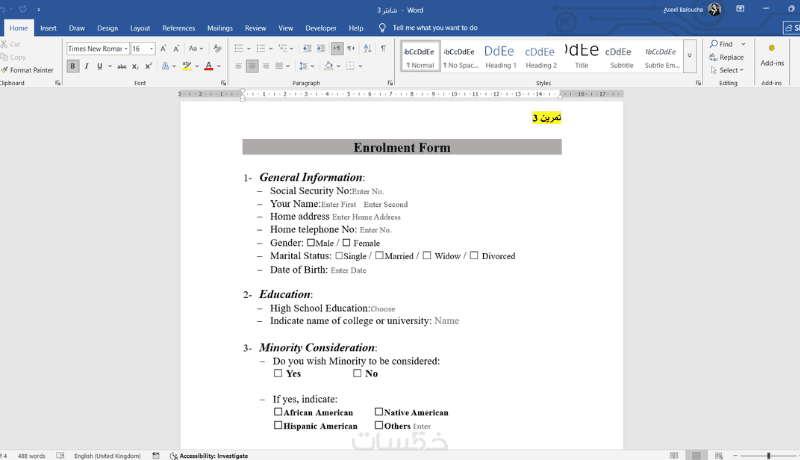 أقدم خدمة تصميم الاستمارات والنماذج بشكل احترافي ومنظم باستخدام برنامج Microsoft Word، بحيث تكون سهلة الاستخدام وقابلة للتعديل والطباعة.