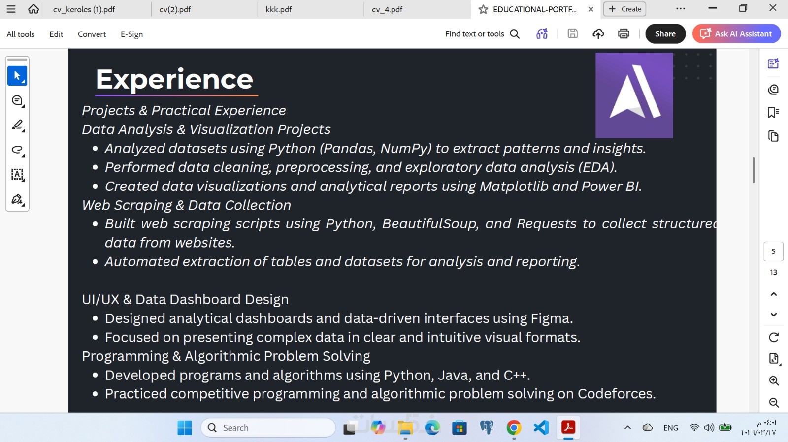 أقدم لك خدمة تصميم بورتفوليو بصيغة PDF بشكل عصري وجذاب يساعدك في التقديم على الوظائف أو جذب العملاء.