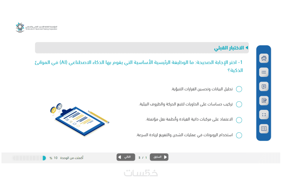 تصميم Quiz لقياس مستوى الفهم مع تغذية راجعة تساعد المتعلم على تحسين أدائه.