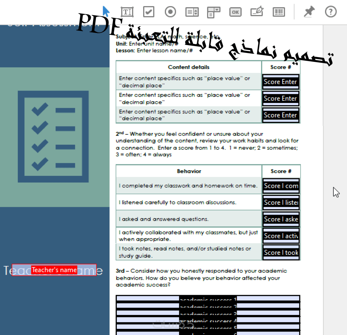 نموذج pdf تفاعلي قابل للتعبئة و الملىء و التوقيع الالكتروني