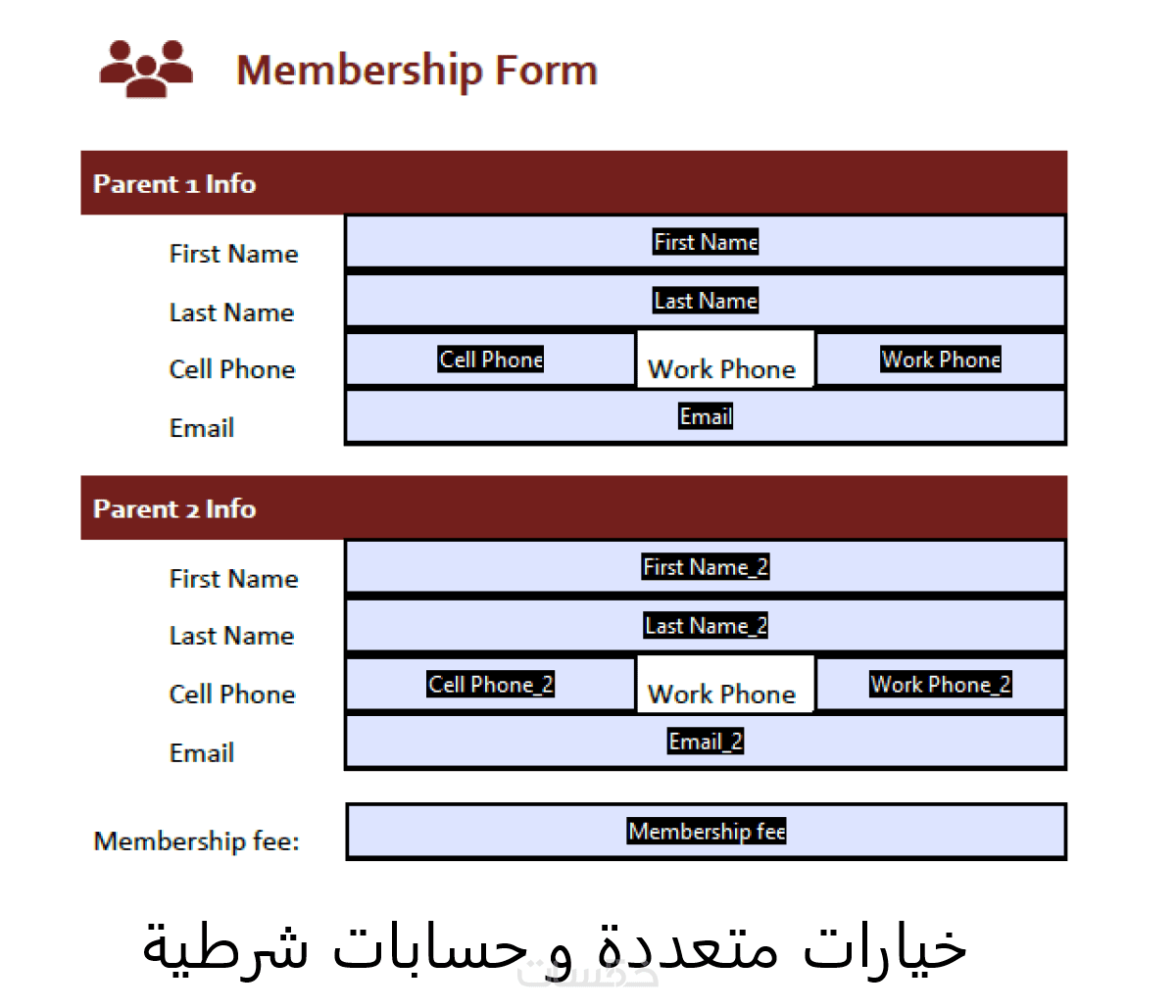إضافة خيارات Check boxes ودوائر الاختيار المتعدد والقوائم المنسدلة وقوائم التواريخ لتسهيل التعبئة.