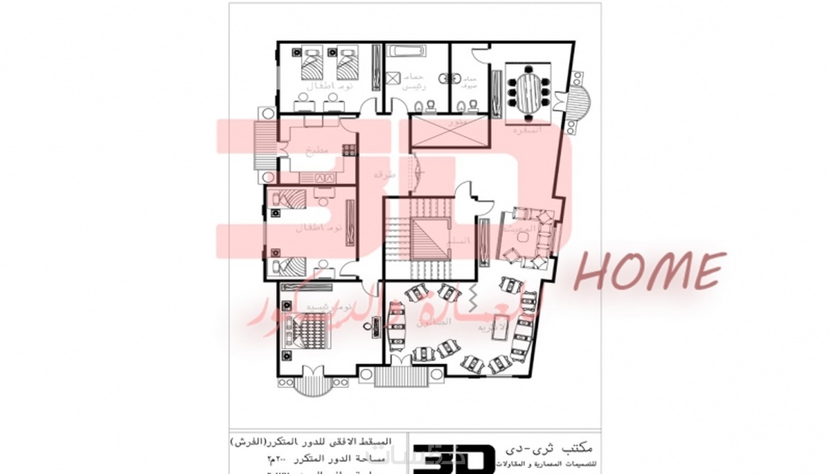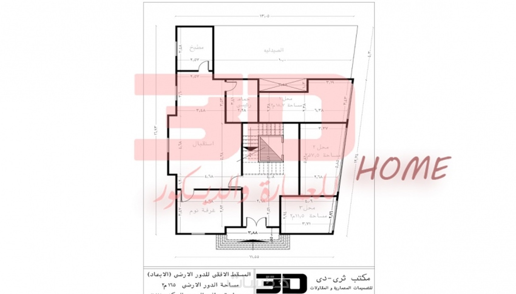 المسقط مع كامل الابعاد الضرورية للتنفيذ يسلم ملف الاتوكاد مع نسخة PDF