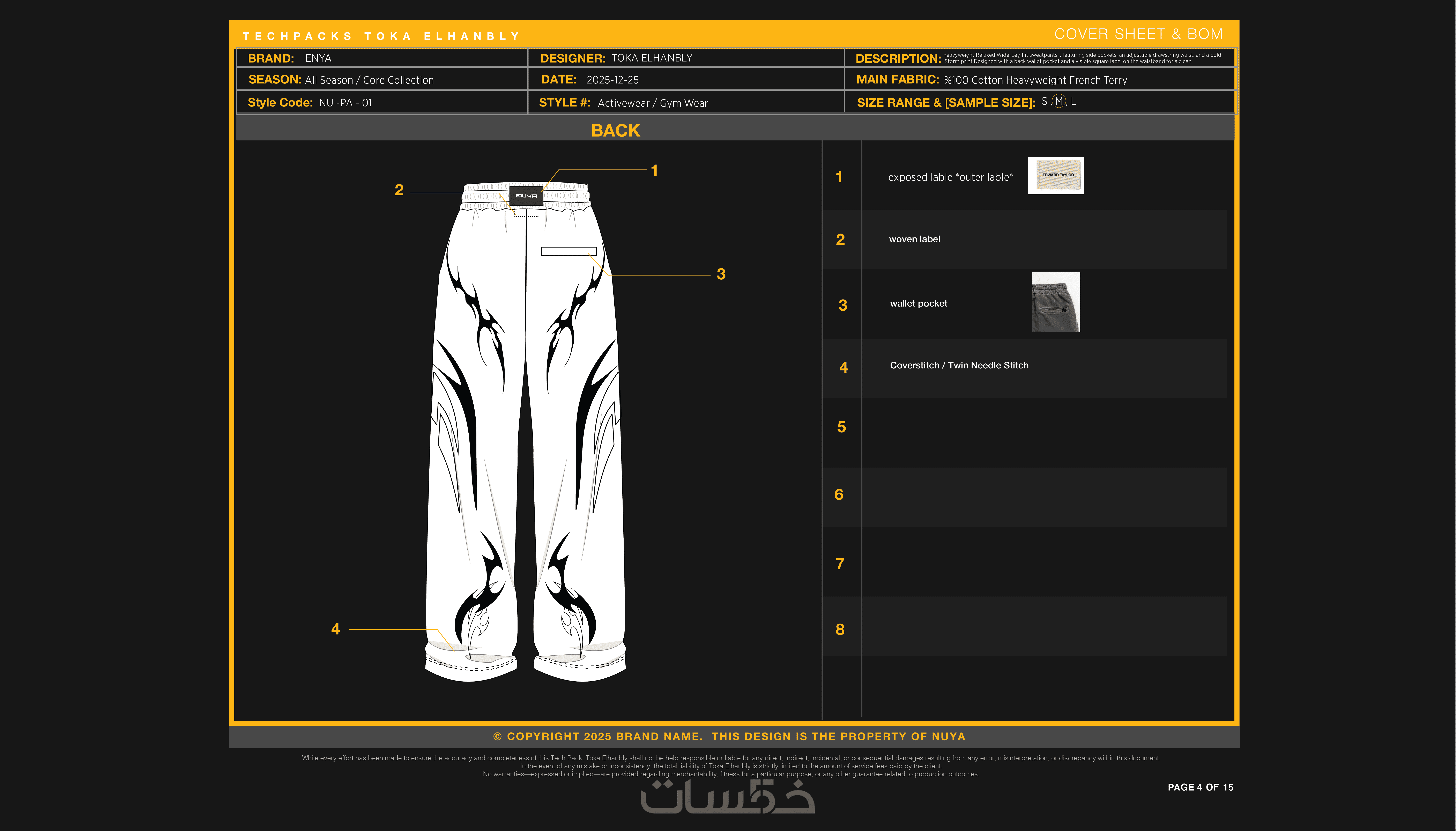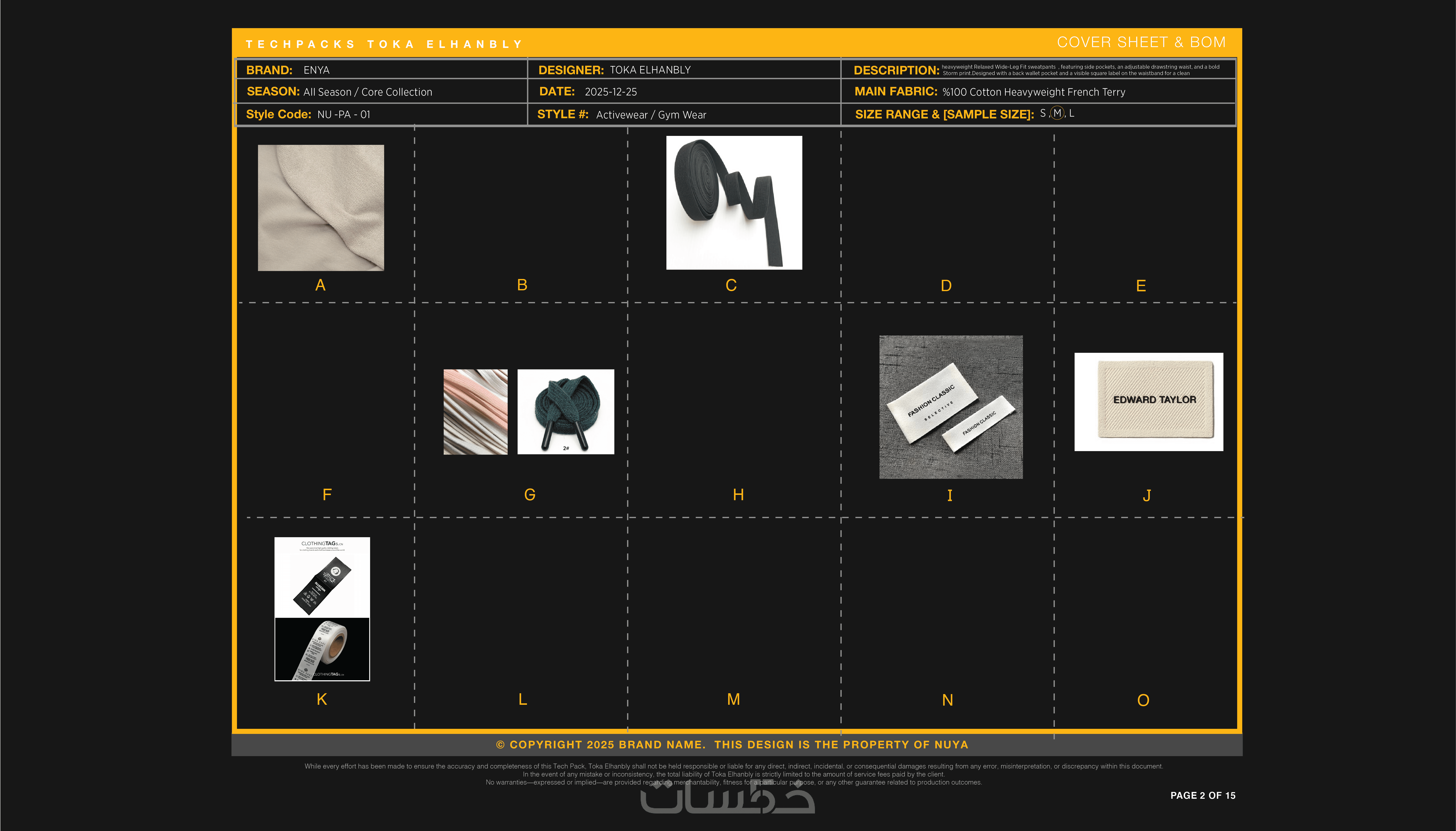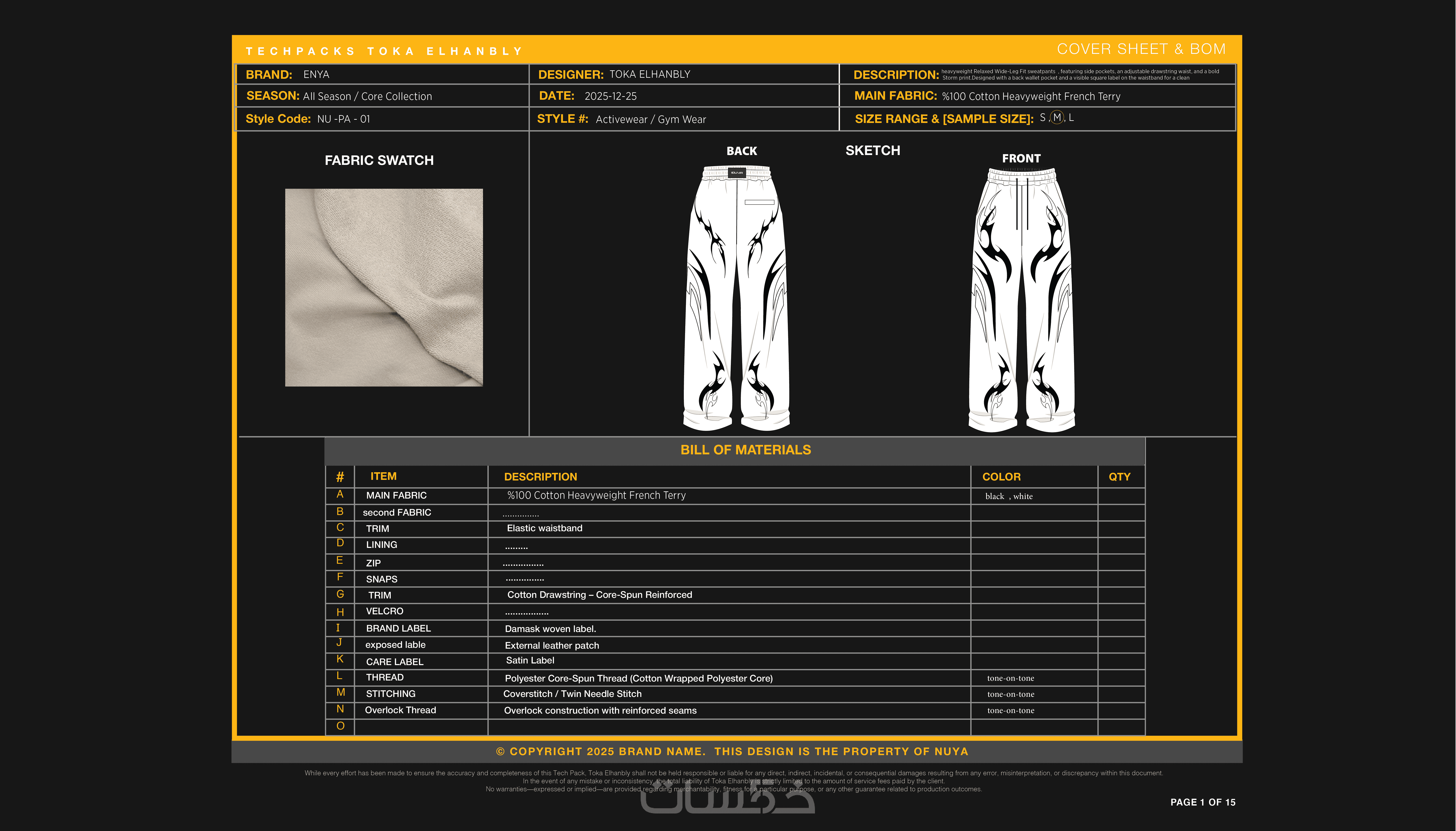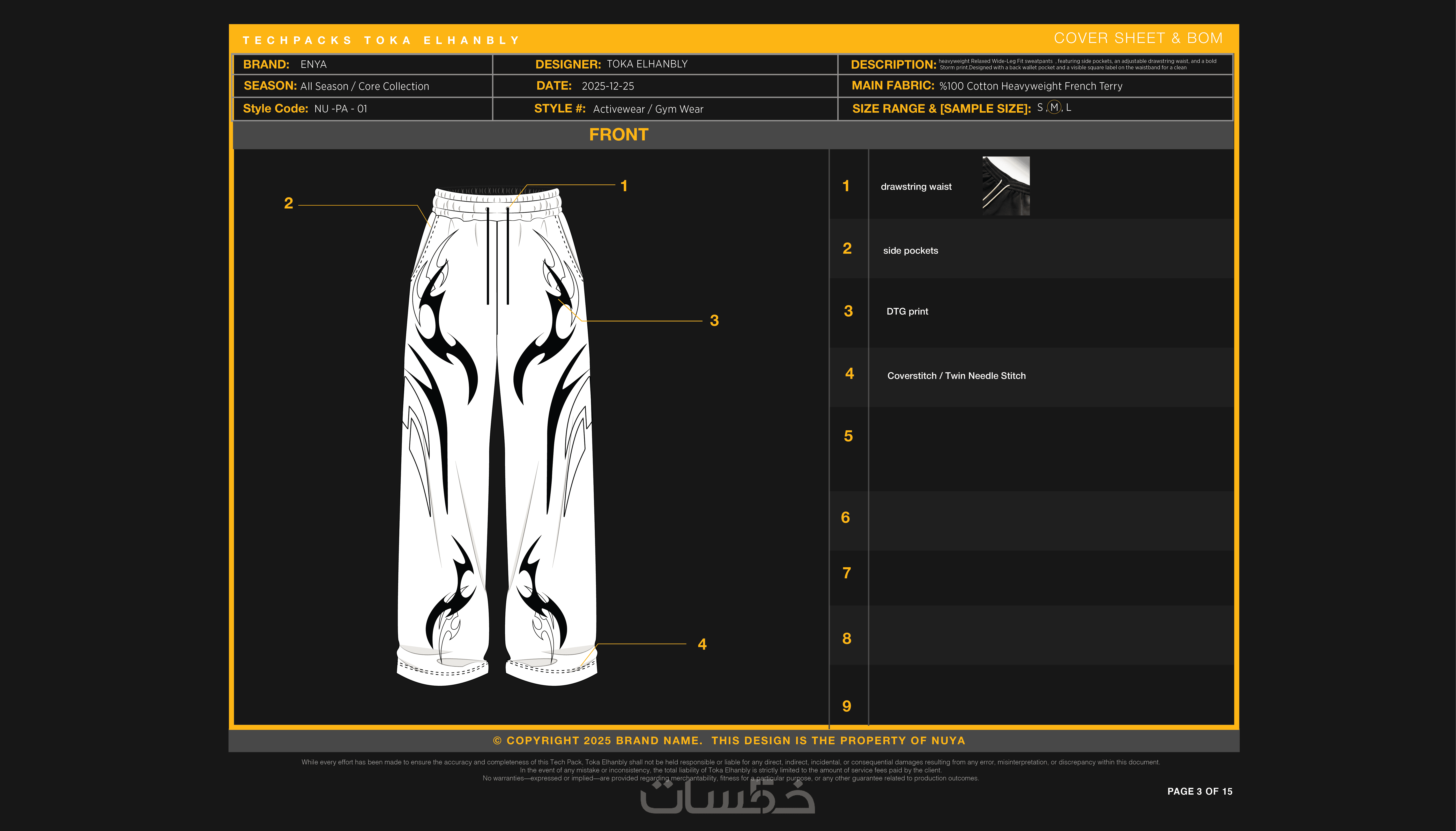 أنا مصممة أزياء بخبرة في إعداد الـ Tech Pack المتكامل الذي يشمل جميع التفاصيل الفنية اللازمة لتصنيع القطعة بأعلى جودة، مع الالتزام بالمقاييس والمعايير العالمية.
