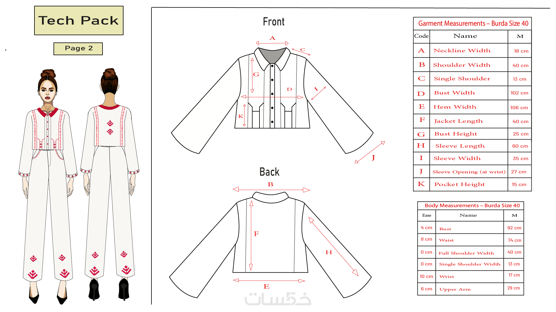 ✔ رسم أزياء مسطّح (Flat Sketch) بتفاصيل احترافية