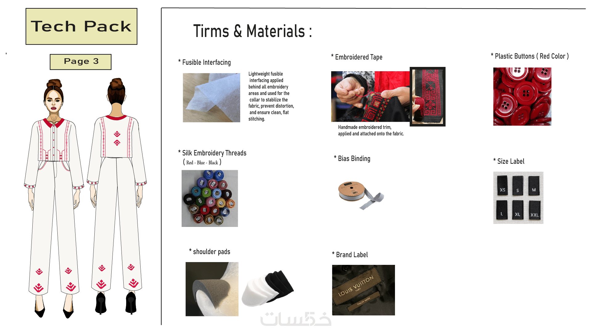 ✔ يجب تزويدي بكافة التفاصيل الخاصة بالقماش والتصميم المطلوب ( الخياطات – القصّات – الإضافات – التشطيب)