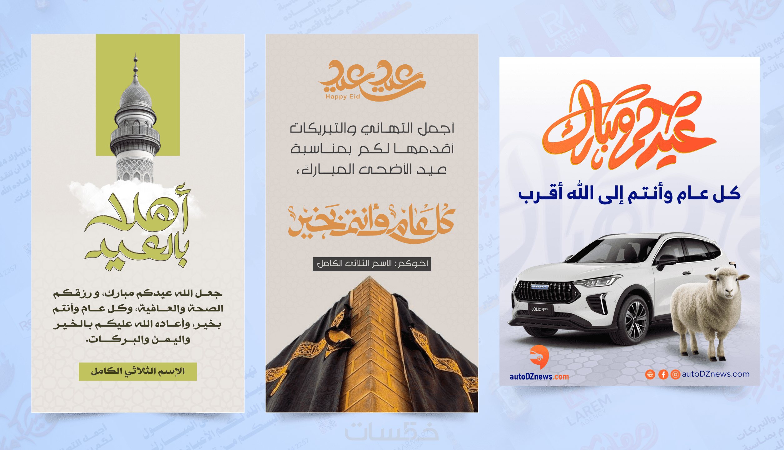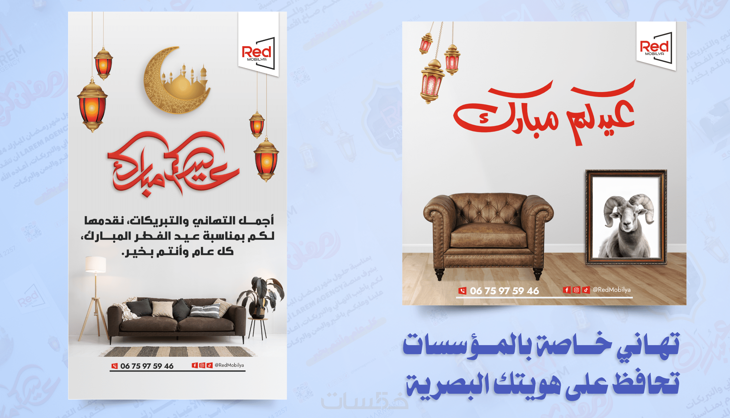 • تصميم بطاقة تهنئة أو معايدة واحدة بمقاس مناسب للنشر على مختلف المنصات