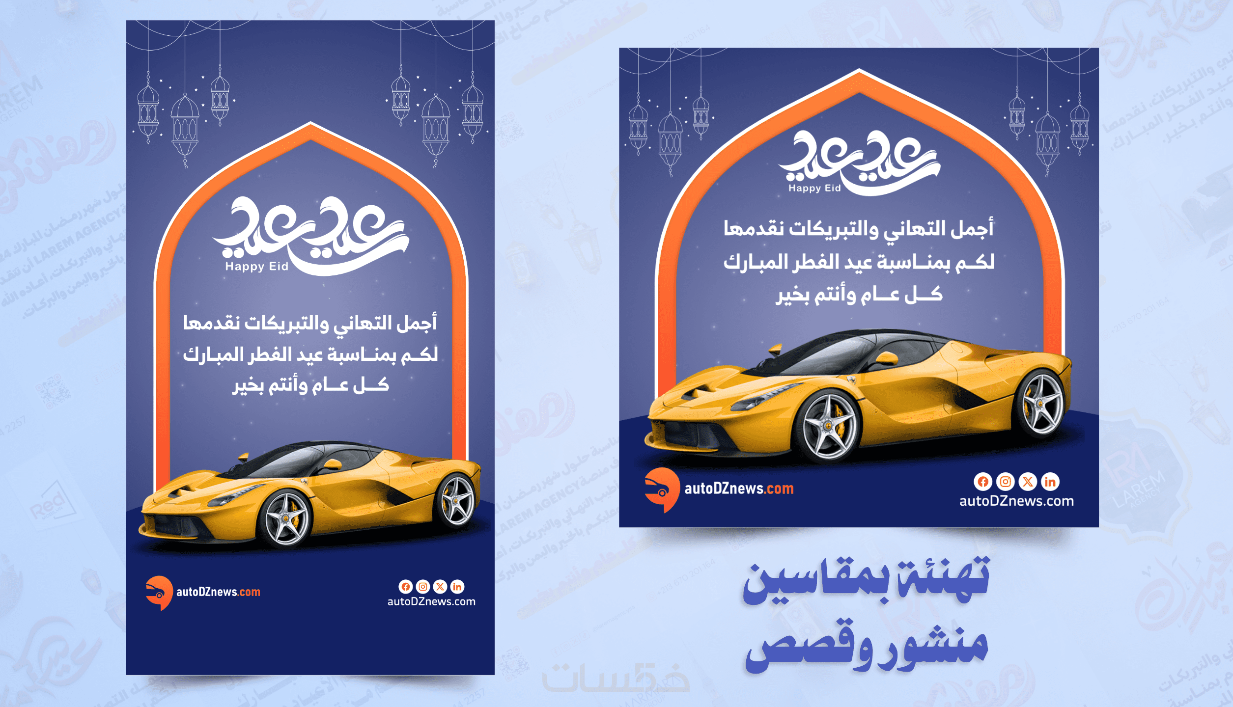 تصميم نفس التهنئة بمقاسين: منشور انستغرام 1350*1080 - مقاس مربع 1080*1080 ومقاس القصص 1920*1080