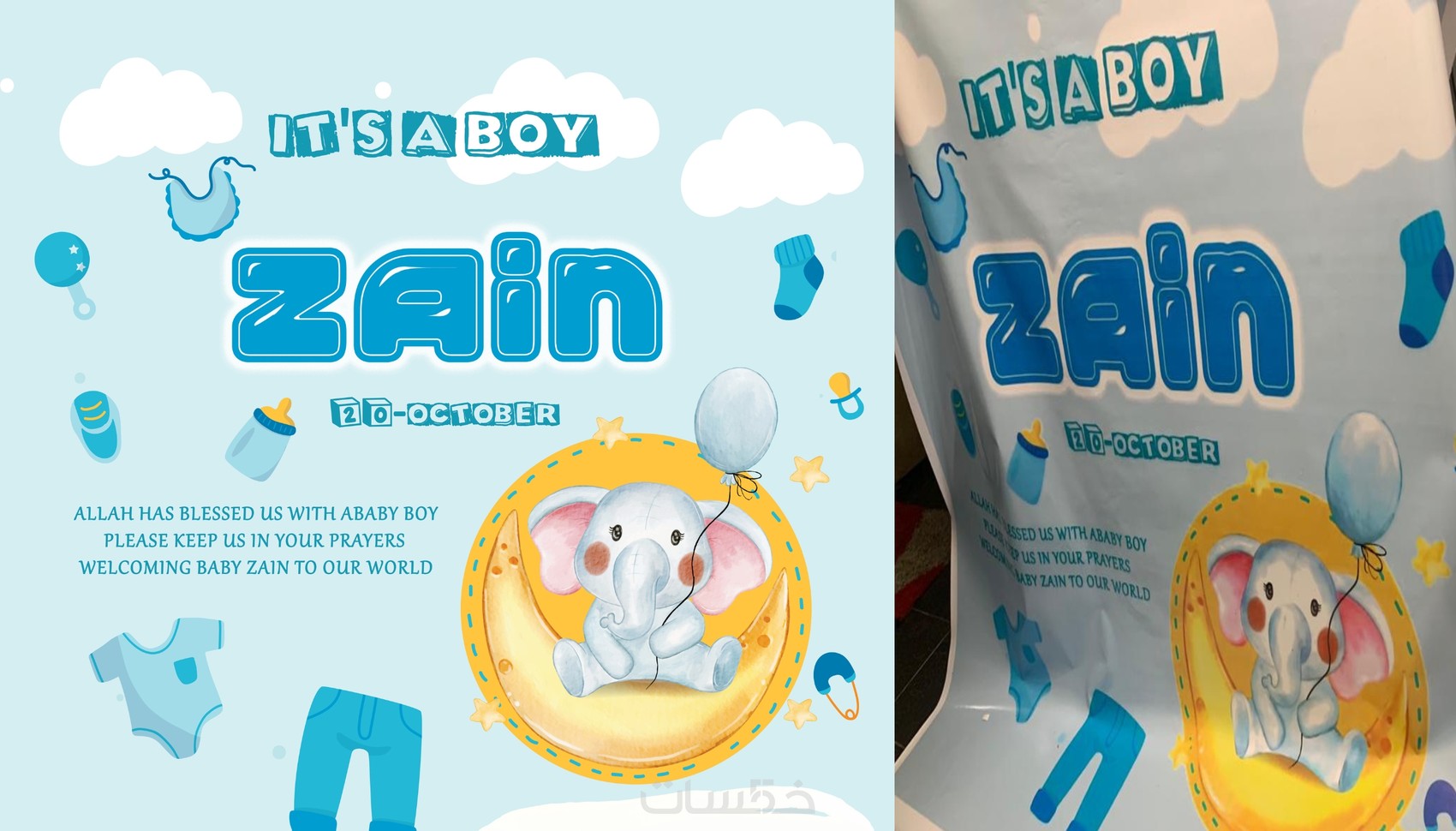 اضافة عمل تصميم بانر للطباعة لأعياد الميلاد والسبوع والمناسبات بمقاسات كبيرة