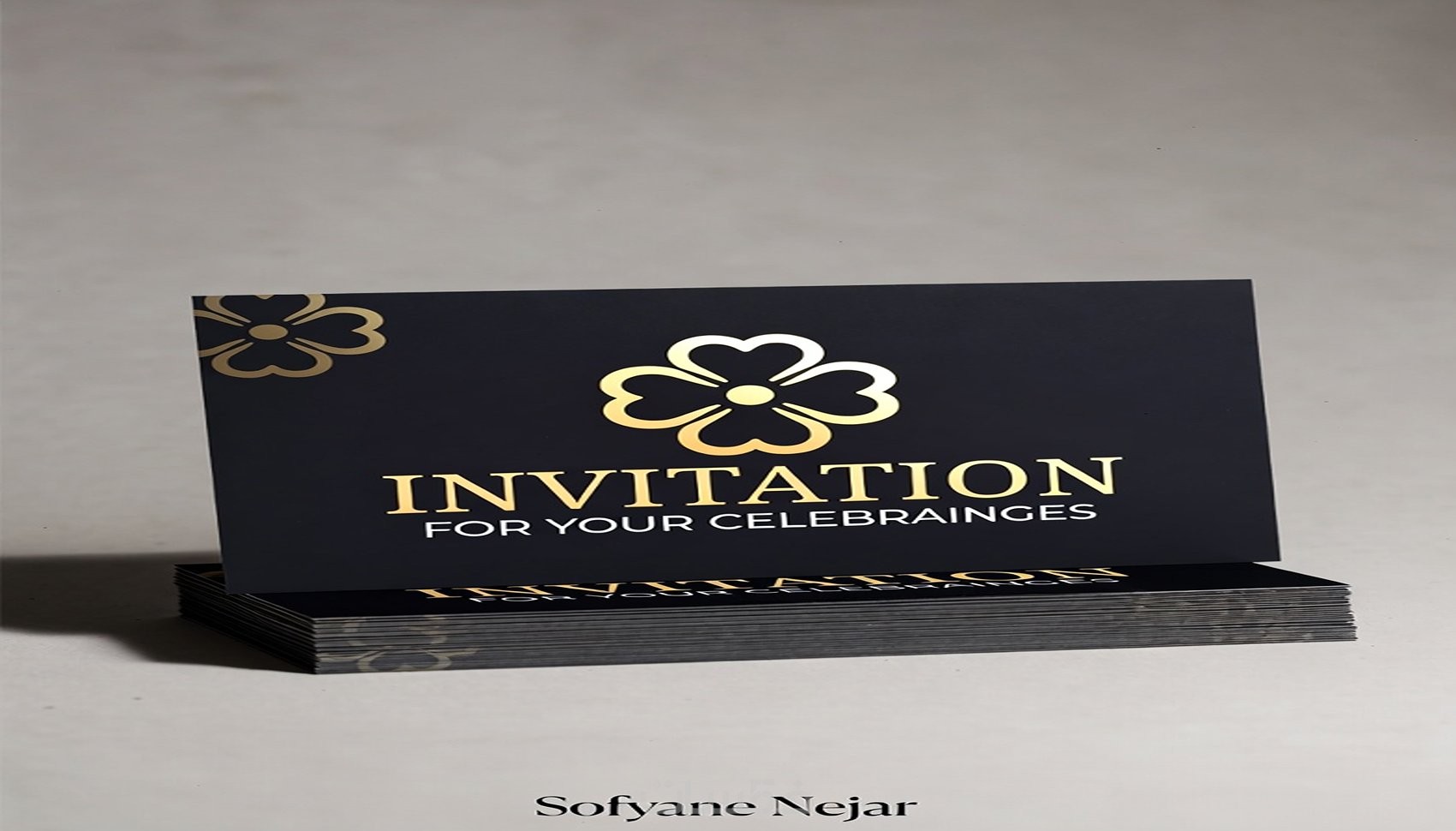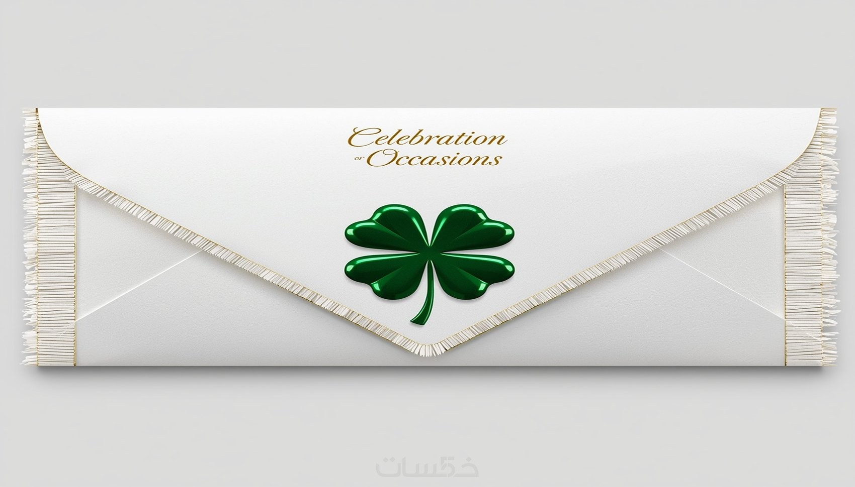 "أصمم لك ظرف دعوات أنيق وفاخر للمناسبات (زفاف، خطوبة، أعياد ميلاد، حفلات...) مع شعار ورقة البرسيم المميز .