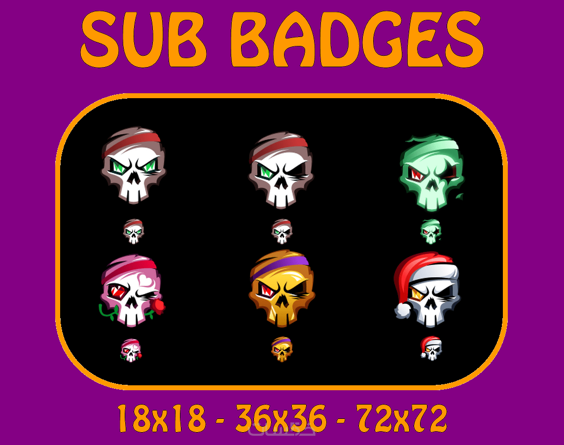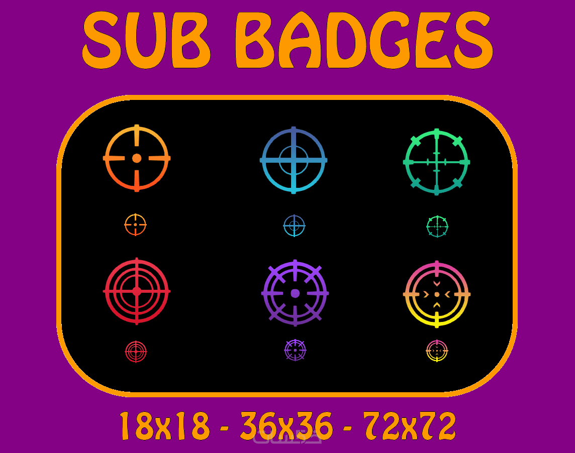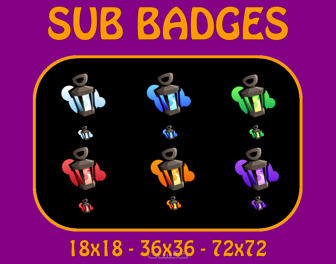 أقدم لكم شارات لأصحاب قنوات Twitchكل مجموعة بها ستة شاراتوهناك الكثير من المجموعات كما يمكن للمشتري أن يختار منهامع إحترام المقاسات التي يسمح بها موقع Twitch والذي هو:18x1836x3672x72صيغ الشارات PNG