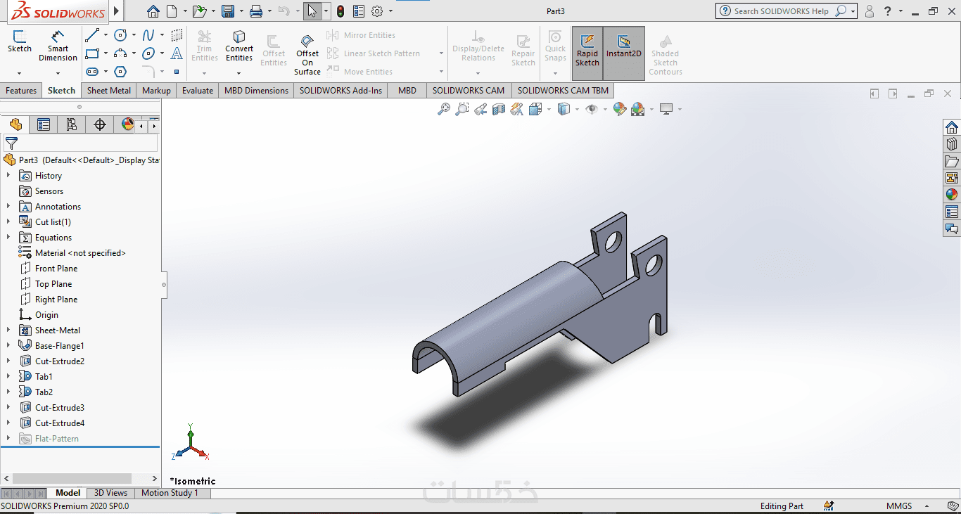 تصميم Sheet Metal شامل الـ Flat Pattern وملفات الـ DXF